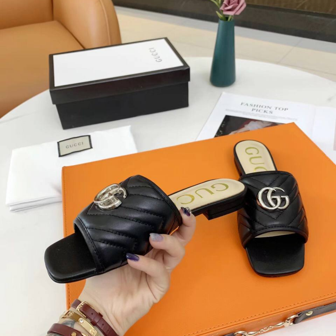 Dettagli:● Materiale: Pelle liscia● Colore: Nero● Chiusura: Slip-on● Logo: Doppia G dorata sulla fascia frontale● Suola: In cuoio● Interno: Fodera