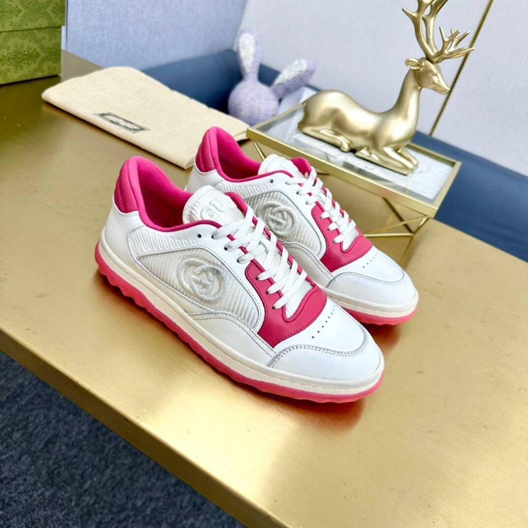 Dettagli:● Materiale: Pelle liscia e tessuto tecnico● Colore: Bianco e rosa● Chiusura: Lacci in cotone bianco● Logo: Logo GG in