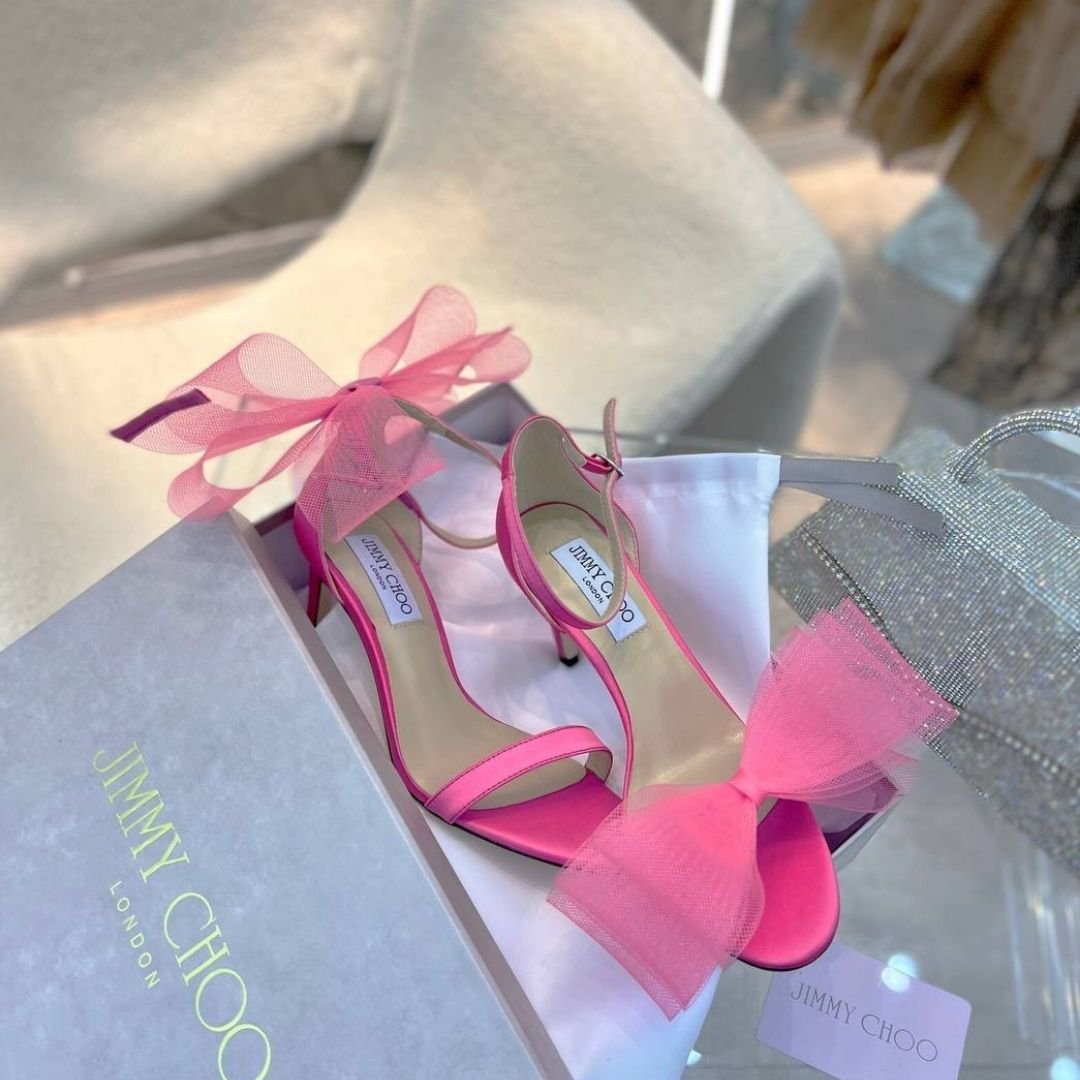 Dettagli:● Materiale: Raso e tulle● Colore: Rosa shocking● Chiusura: Cinturino alla caviglia● Logo: Interno in pelle con stampa Jimmy Choo●