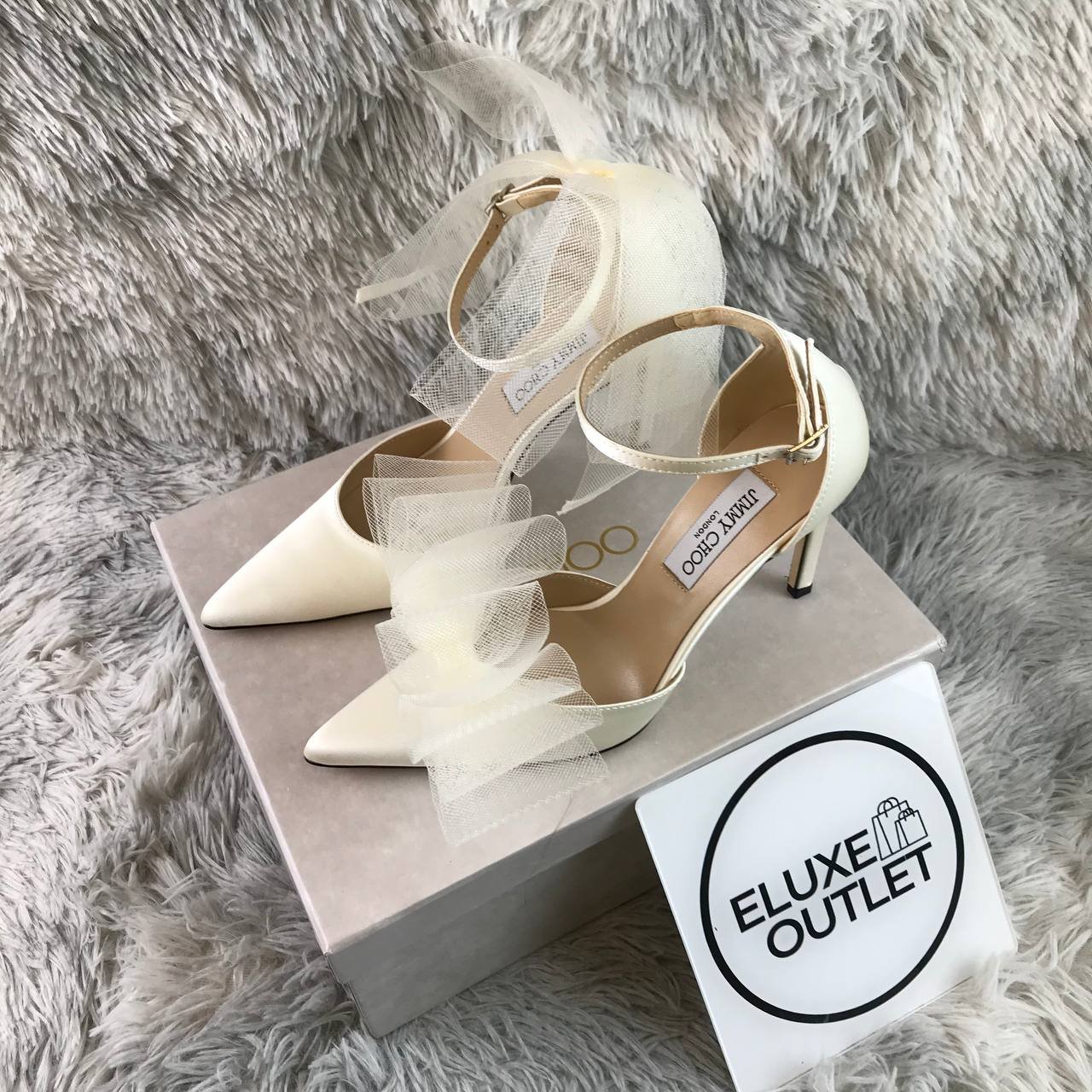 Dettagli:● Materiale: Raso e tulle● Colore: Bianco● Chiusura: Cinturino alla caviglia con fiocco in tulle● Logo: Stampato sulla soletta● Suola: