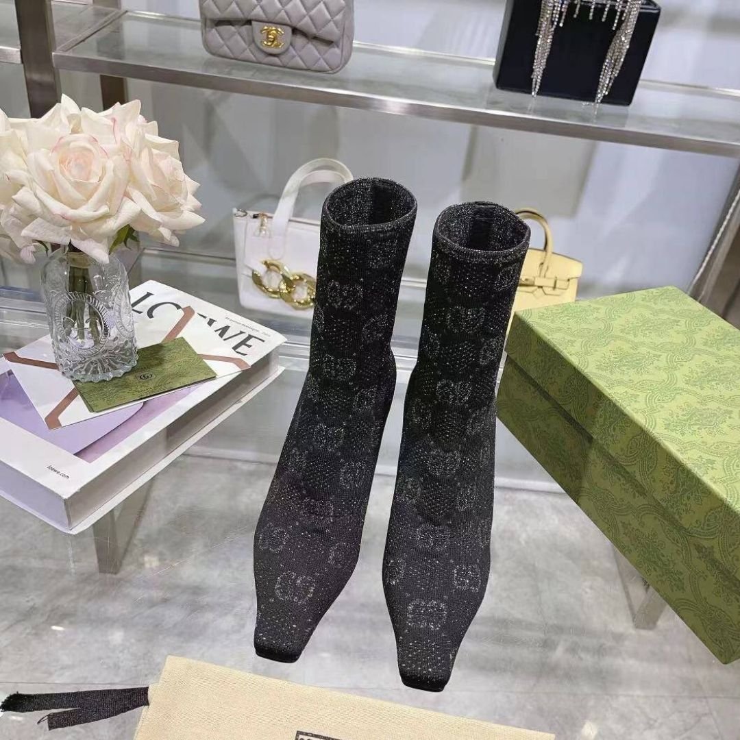 Stivaletti stretch Gucci GG Strike in tessuto nero con tacco 7,5 cm