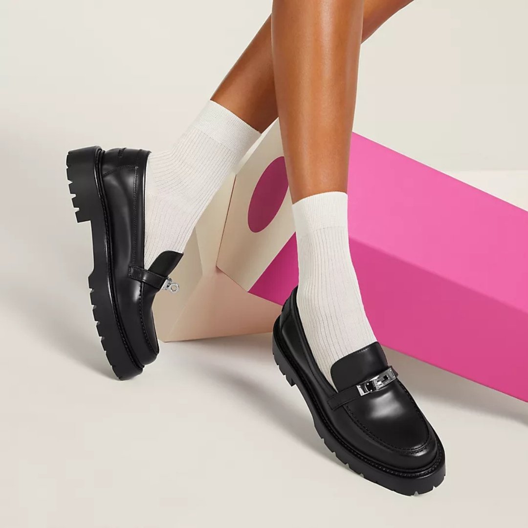 Mocassini Hermès Icône in pelle nera con tacco 3 cm