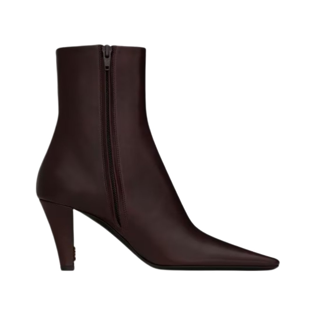 Stivaletti Saint Laurent Jill in pelle liscia marrone scuro 7,5 cm