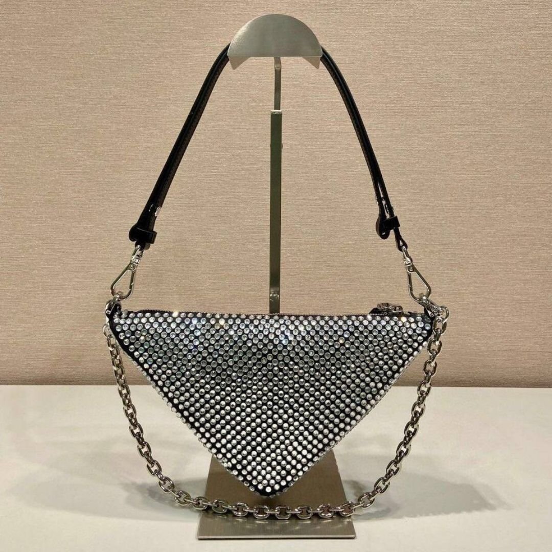 Borsa Prada Saffiano Triangle con cristalli 25 cm