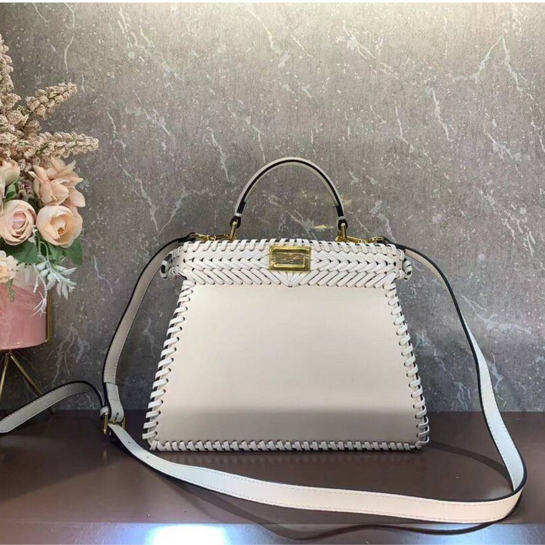 Dimensioni:● Larghezza: 27 cm● Altezza: 20 cm● Profondità: 11 cm Dettagli:● Materiale: Pelle liscia● Colore: Beige● Chiusura: Doppio scomparto Peekaboo●