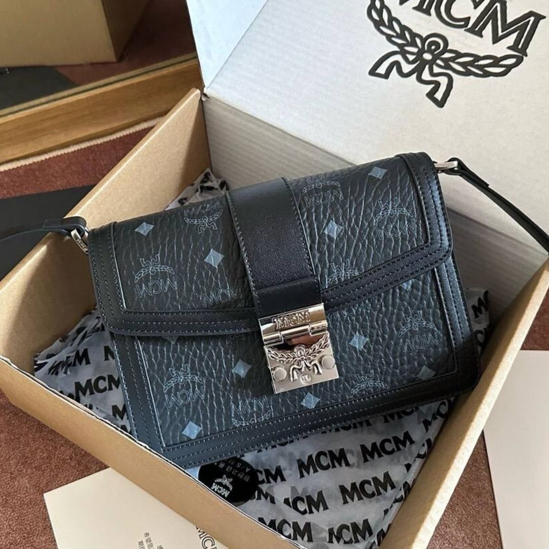 Borsa MCM Tracy nera con finiture argento 22 cm