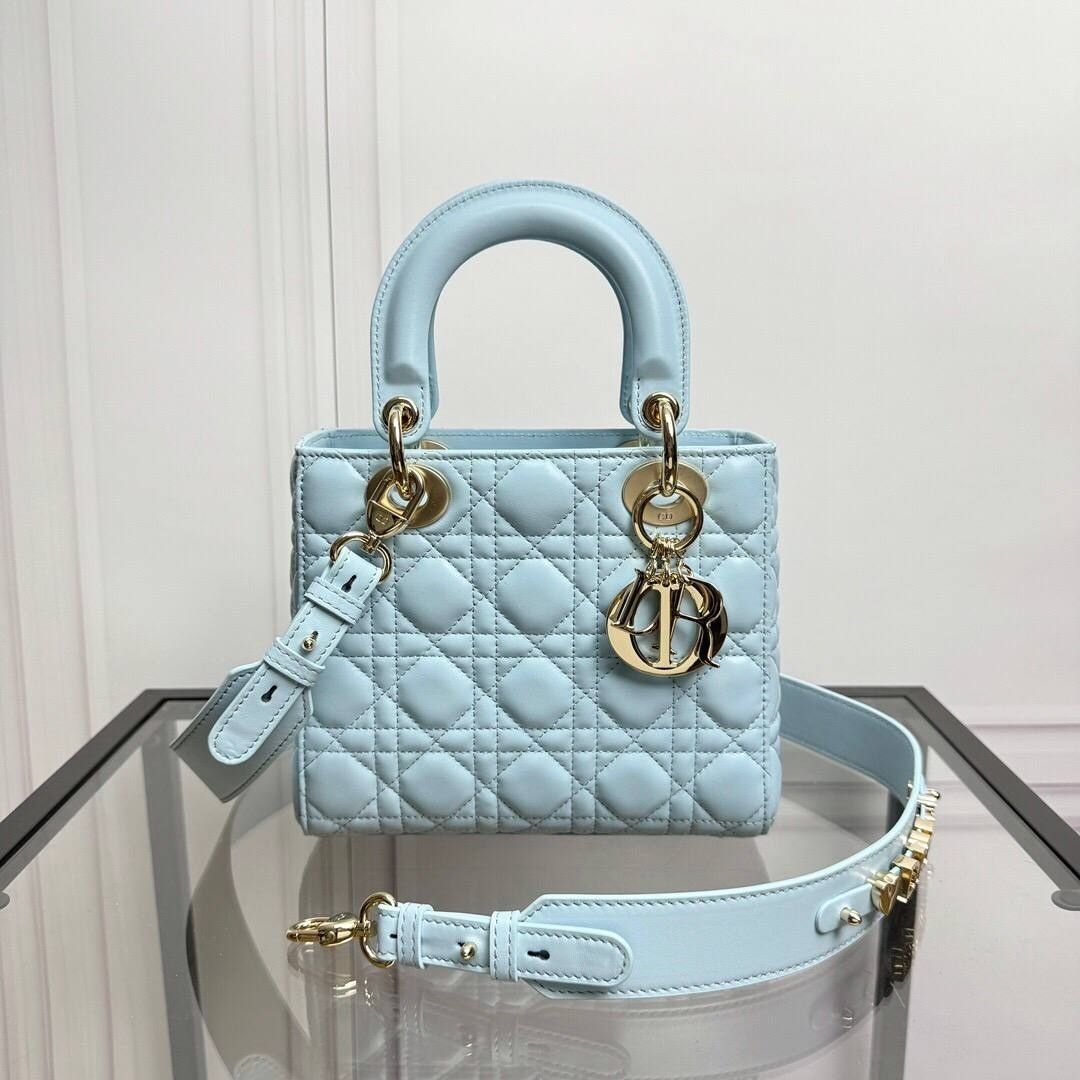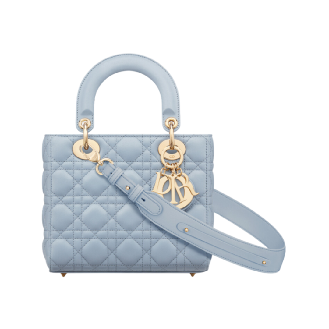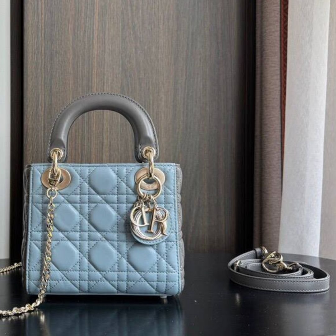 Borsa Dior Lady blu cielo e grigio talpa 24 cm