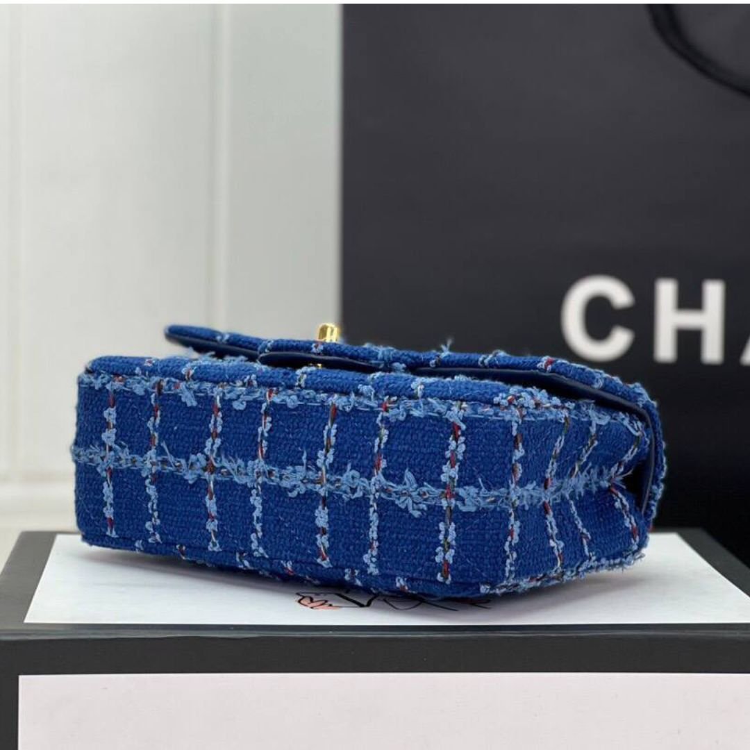 Borsa Chanel Classic Flap Mini blu con finiture oro 20 cm