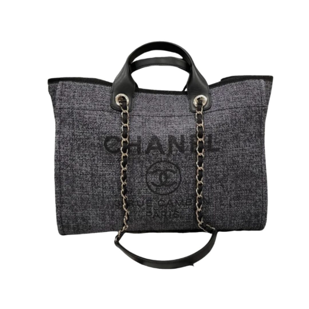 Borsa Chanel Deauville grigio scuro e oro 39 cm
