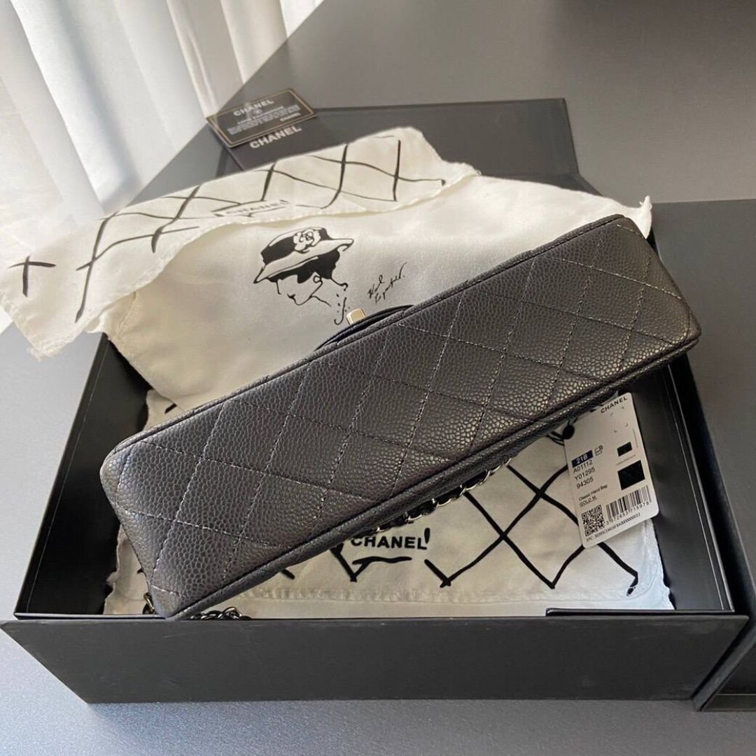 Borsa Chanel Classic Flap in pelle nera 25,5 cm