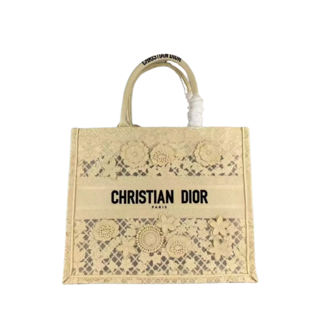 Borsa Dior Book Tote grande in pizzo Macramé avorio 42 cm