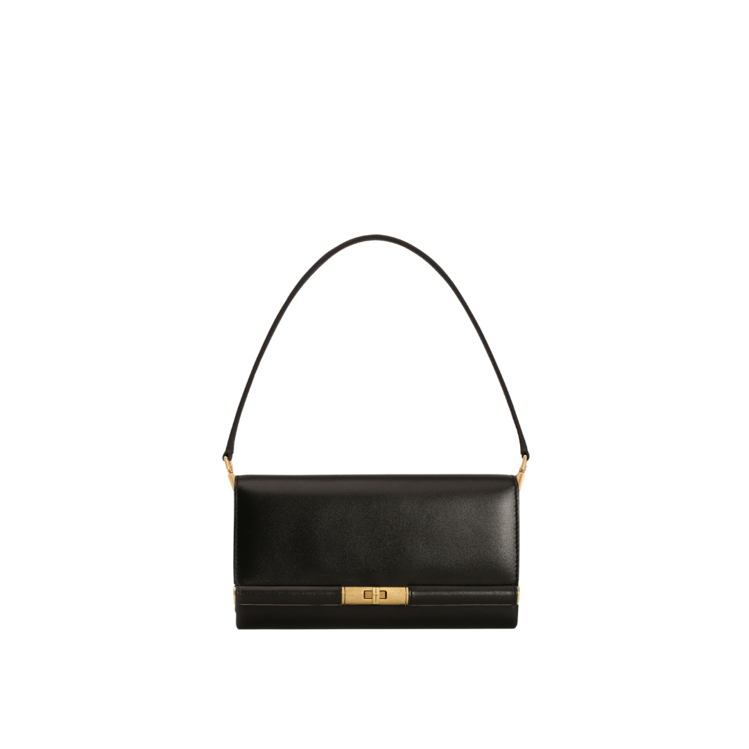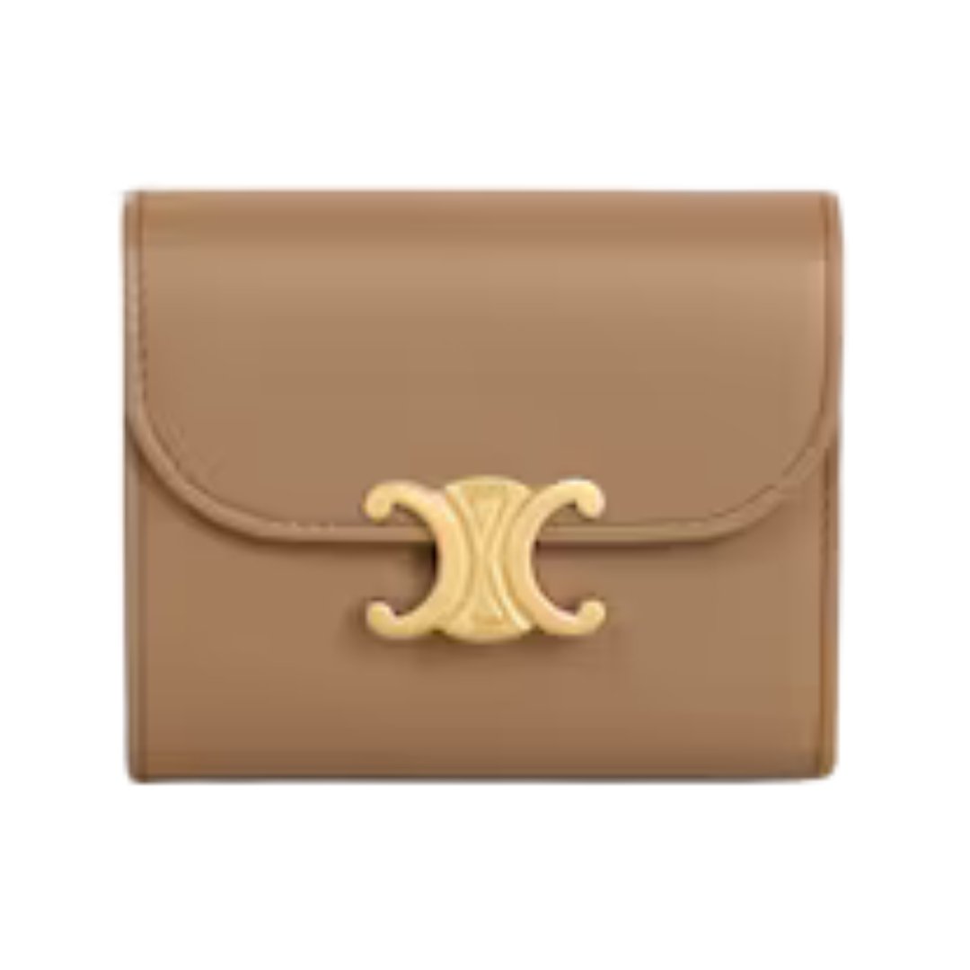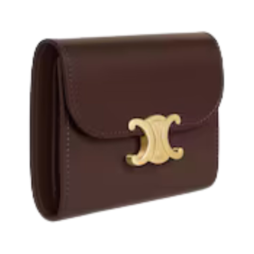 Portafoglio Celine Triomphe con patta in vitello lucido marrone 10.5 cm