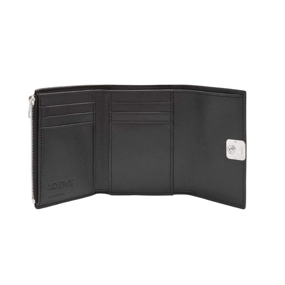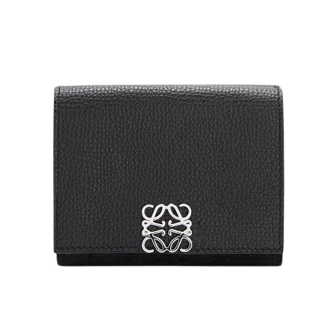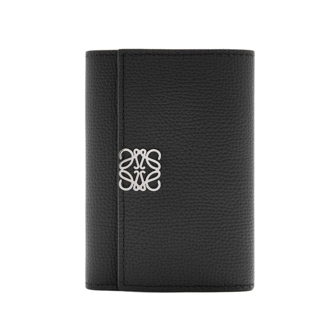 Portafoglio a tre pieghe Loewe Anagram in pelle martellata nera 7,8 cm