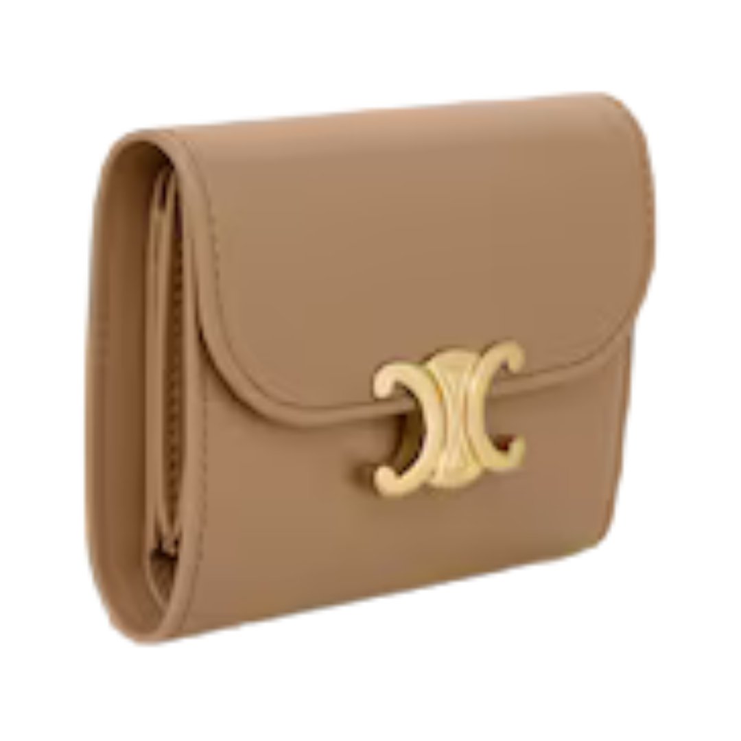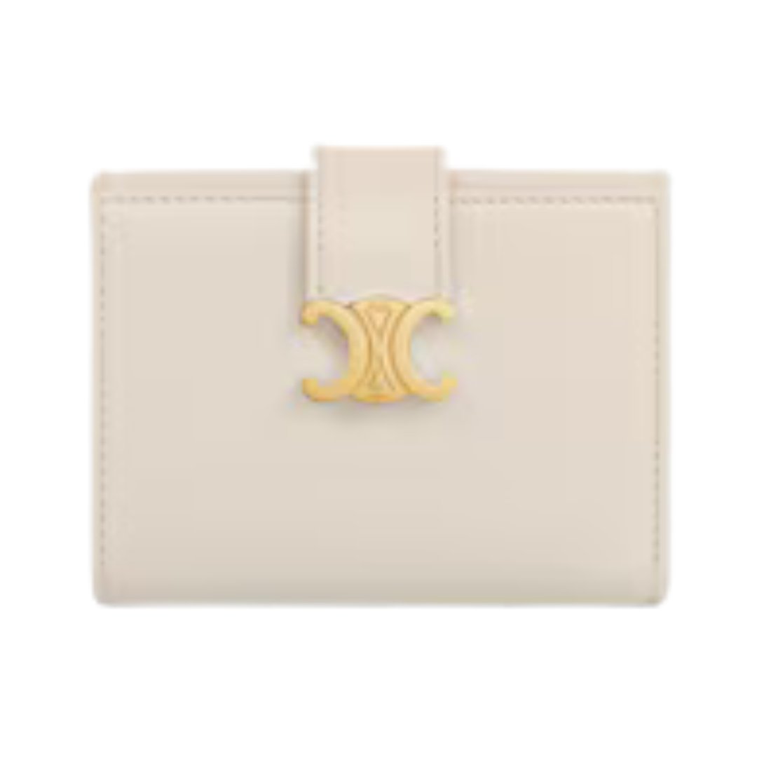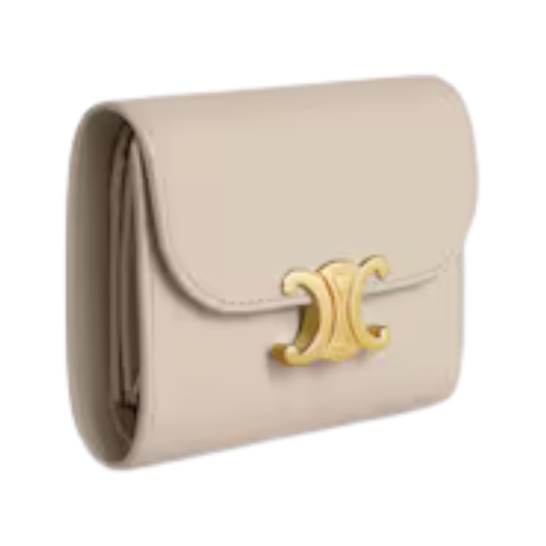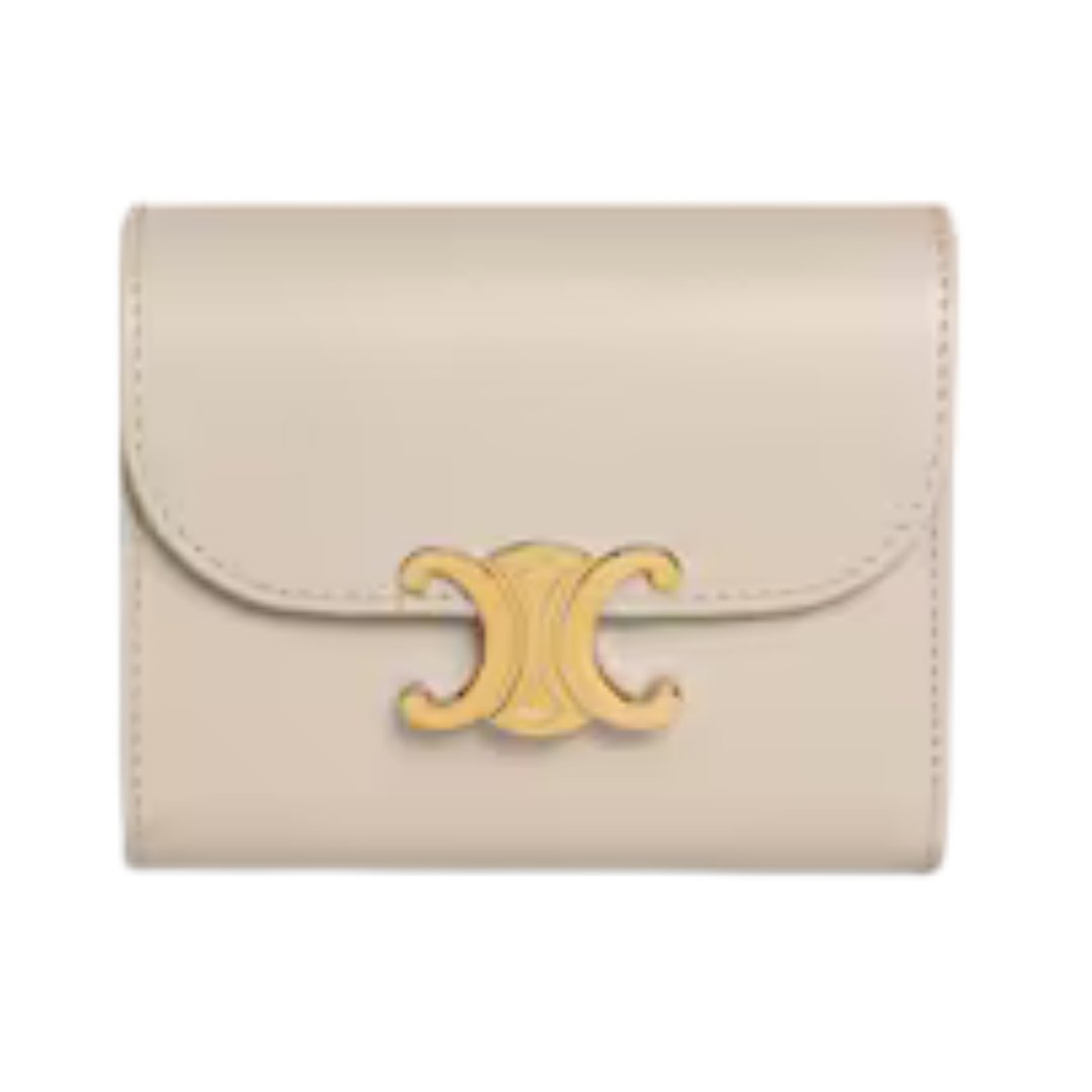 Portafoglio Celine Triomphe con patta in vitello lucido avorio 10.5 cm