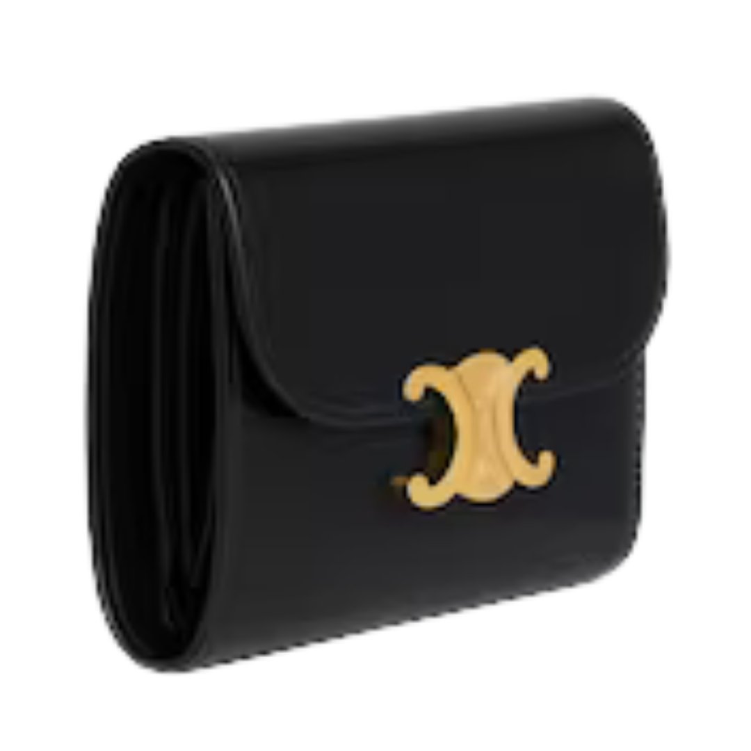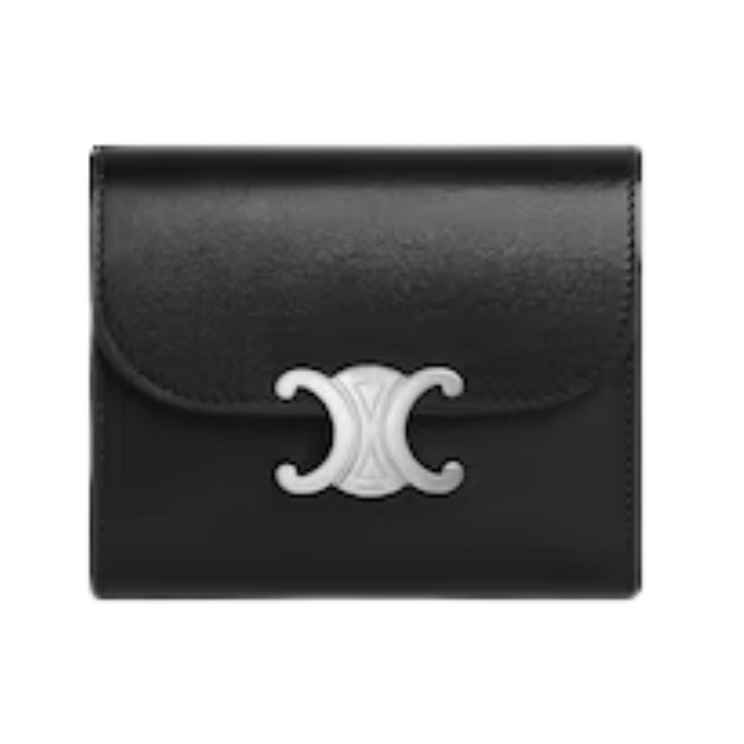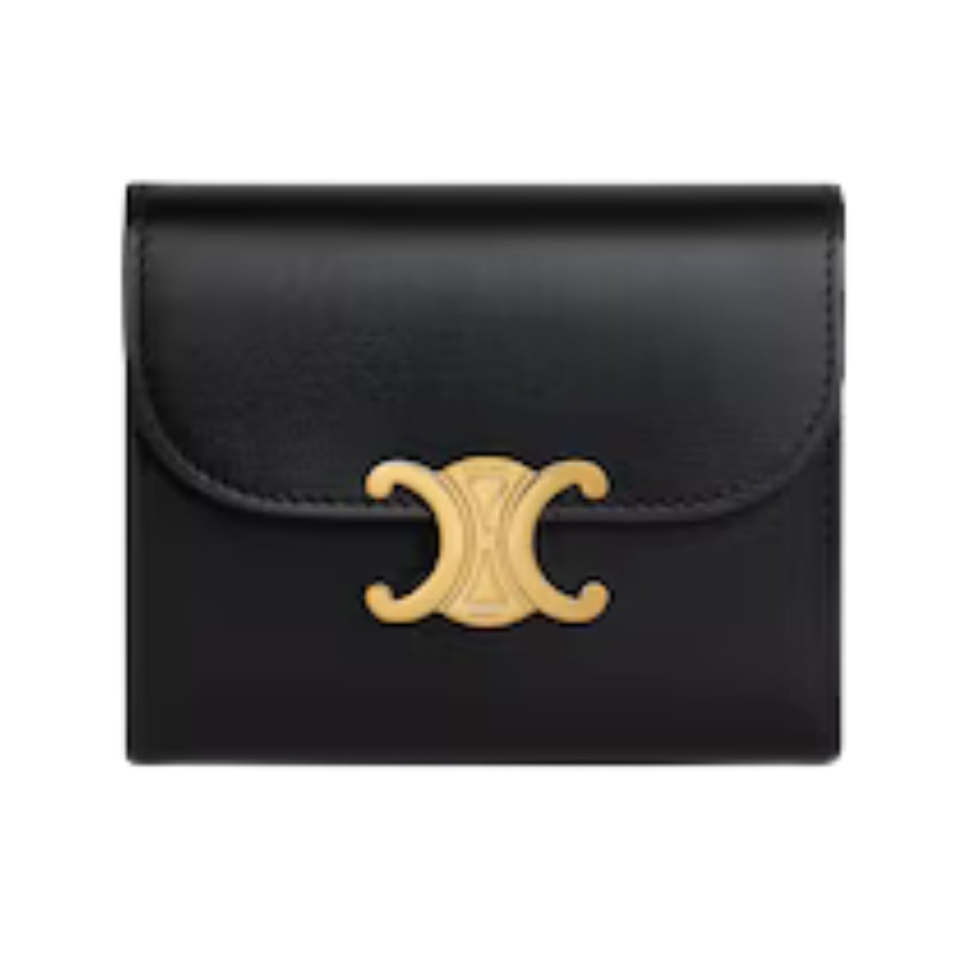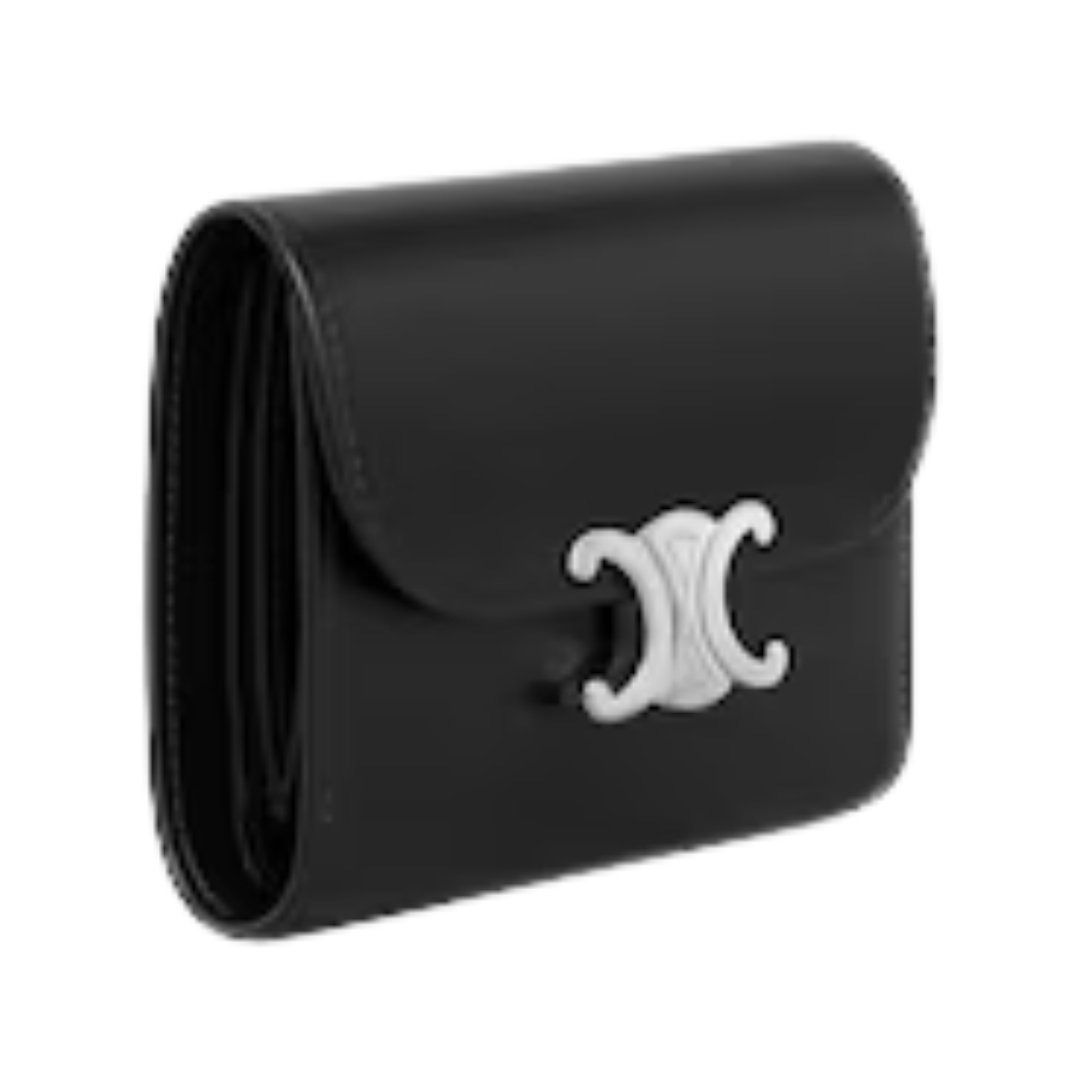 Portafoglio Celine Triomphe piccolo in pelle nera 10.5 cm
