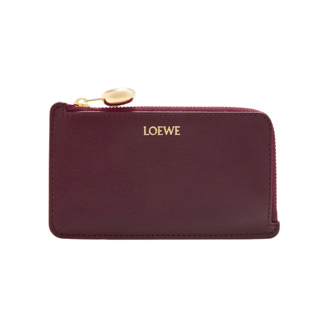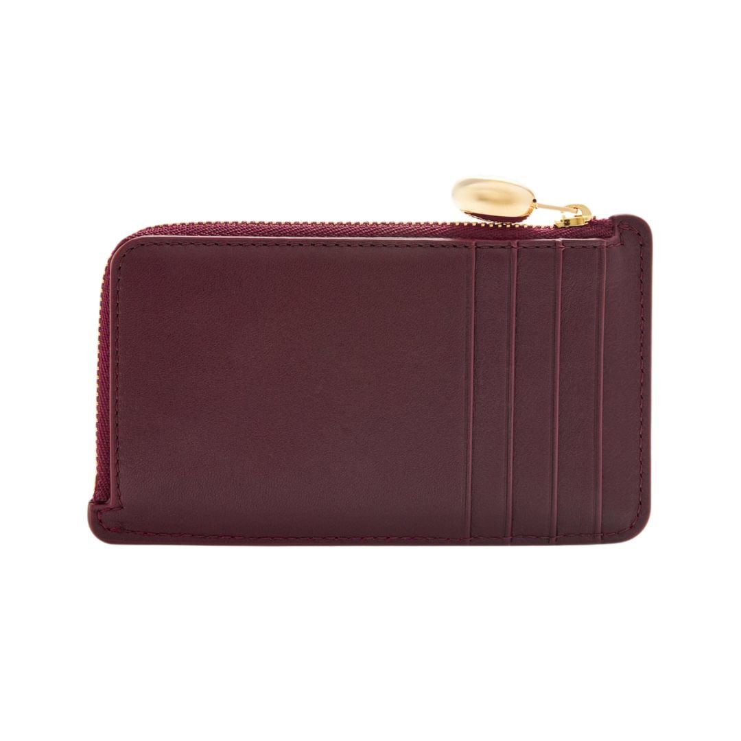 Dimensioni:● Larghezza: 13 cm● Altezza: 7.5 cm● Profondità: 0.5 cm Dettagli:● Materiale: Nappa di vitello● Colore: Bordeaux● Chiusura: Zip● Logo: