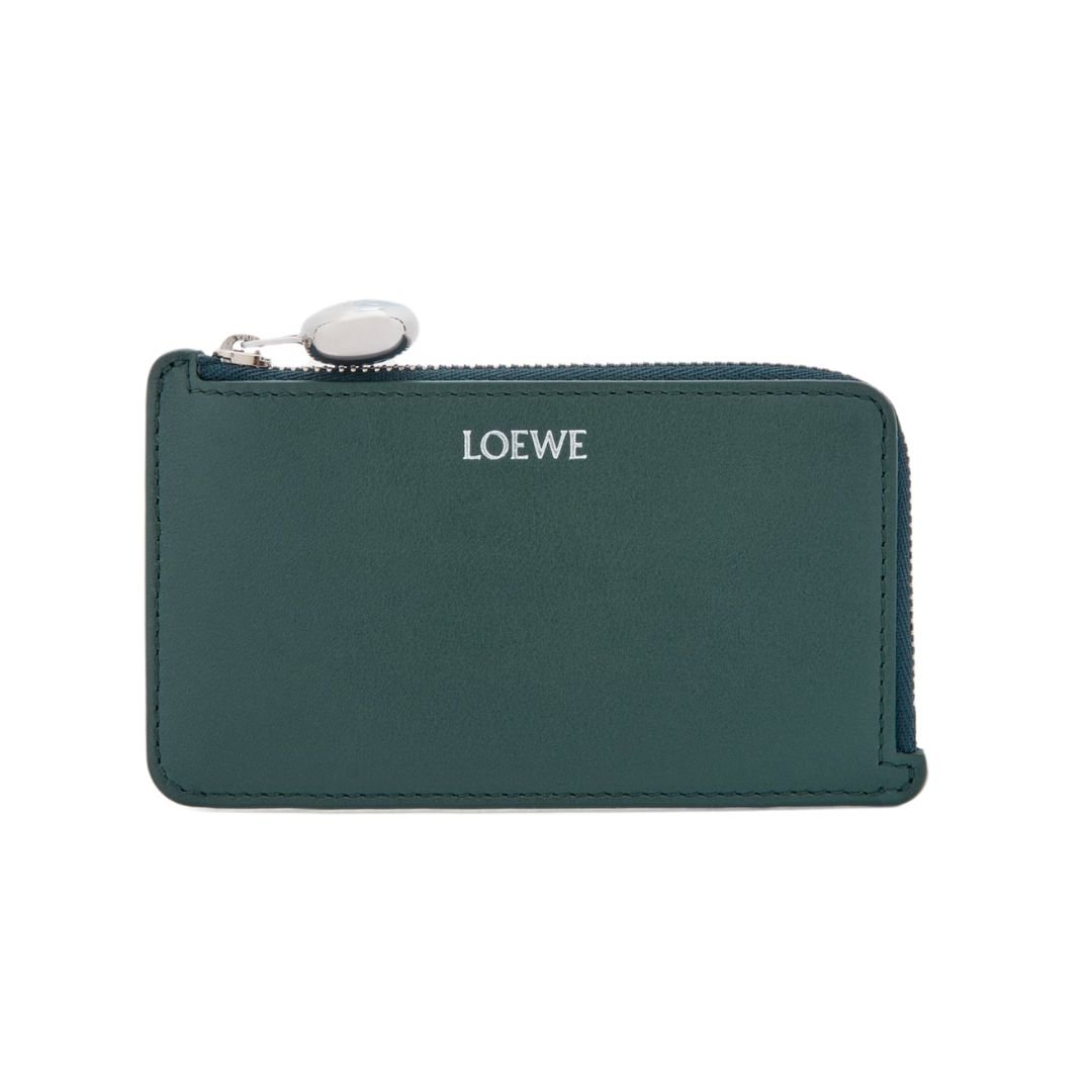 Dimensioni:● Larghezza: 13 cm● Altezza: 7.5 cm● Profondità: 0.5 cm Dettagli:● Materiale: Pelle nappa lucida● Colore: Verde scuro● Chiusura: Zip●