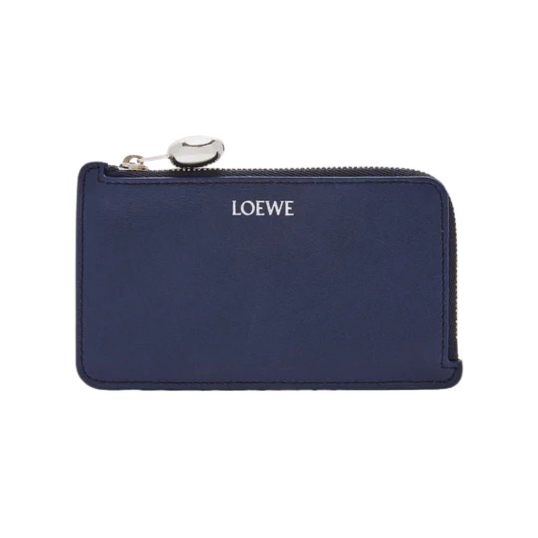 Dimensioni:● Larghezza: 13 cm● Altezza: 7.5 cm● Profondità: 0.5 cm Dettagli:● Materiale: Nappa lucida di vitello● Colore: Blu navy● Chiusura: