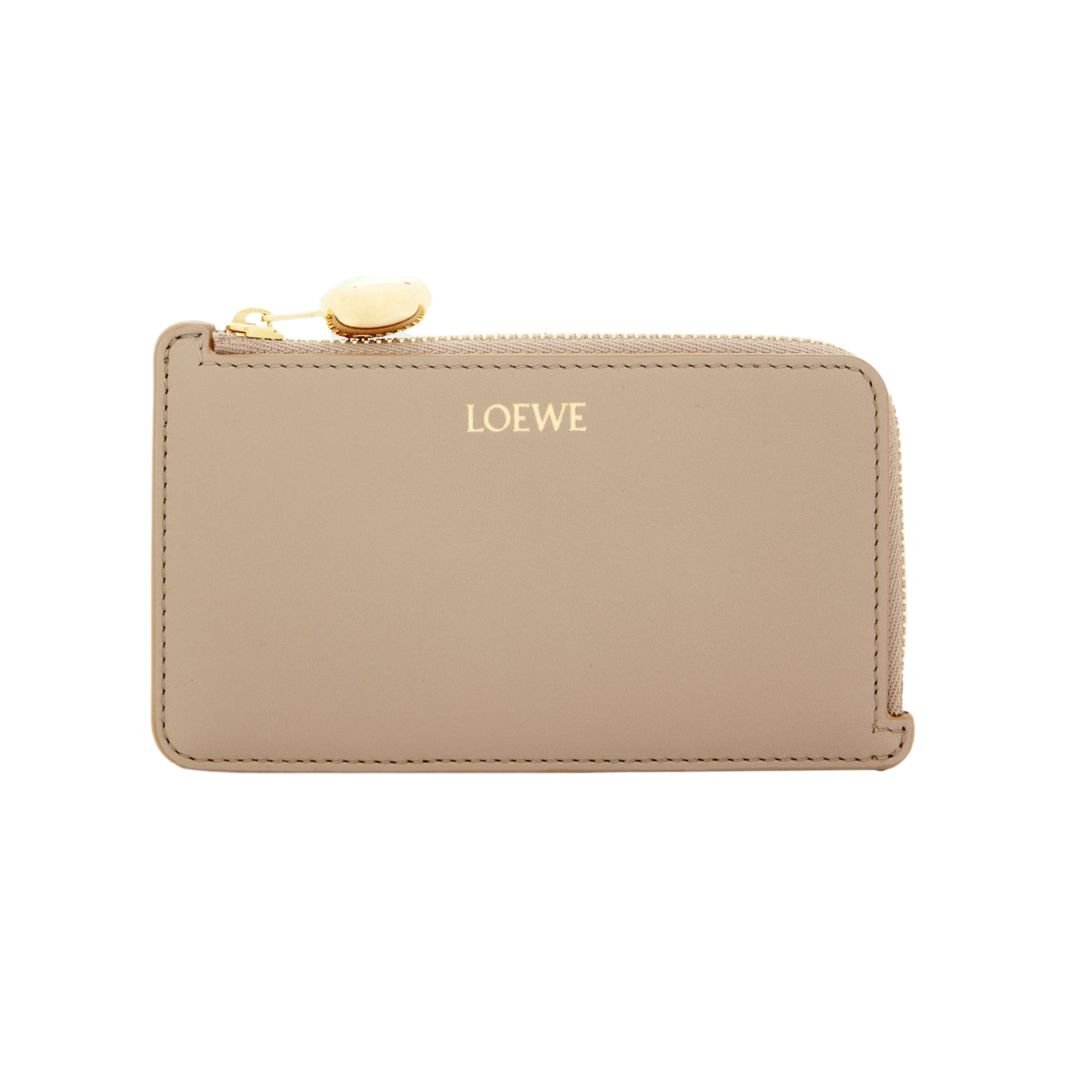 Portafoglio verticale piccolo Loewe Anagram in pelle martellata beige chiaro 8,2 cm