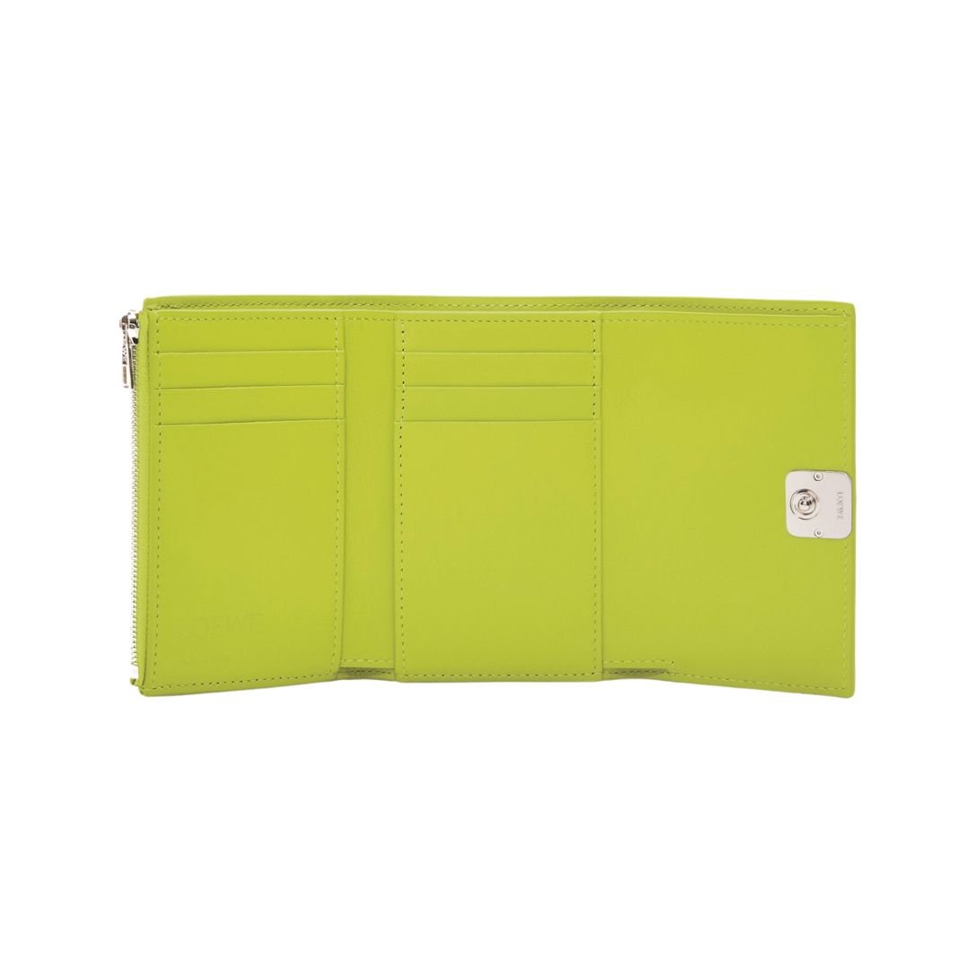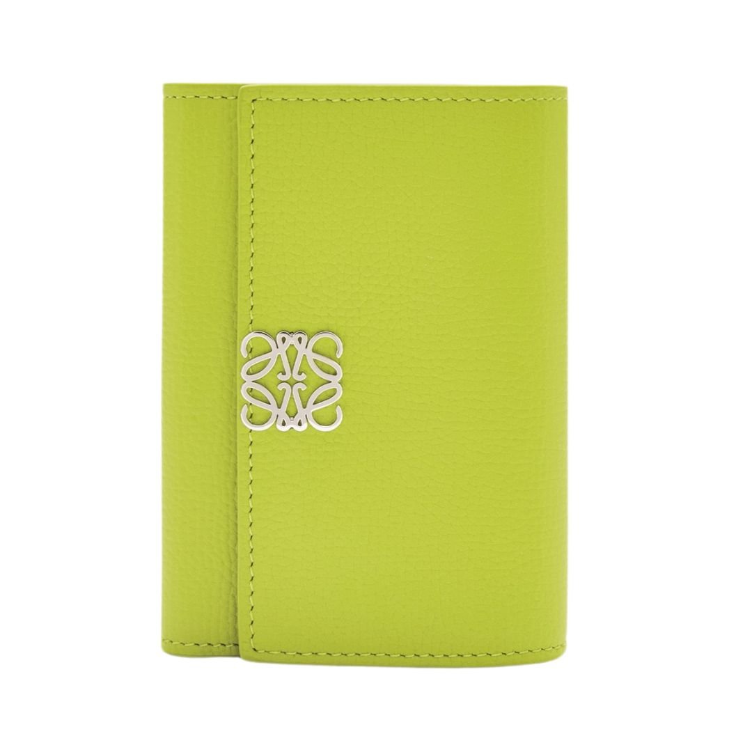 Portafoglio verticale piccolo Loewe Anagram in pelle martellata lime 8,2 cm