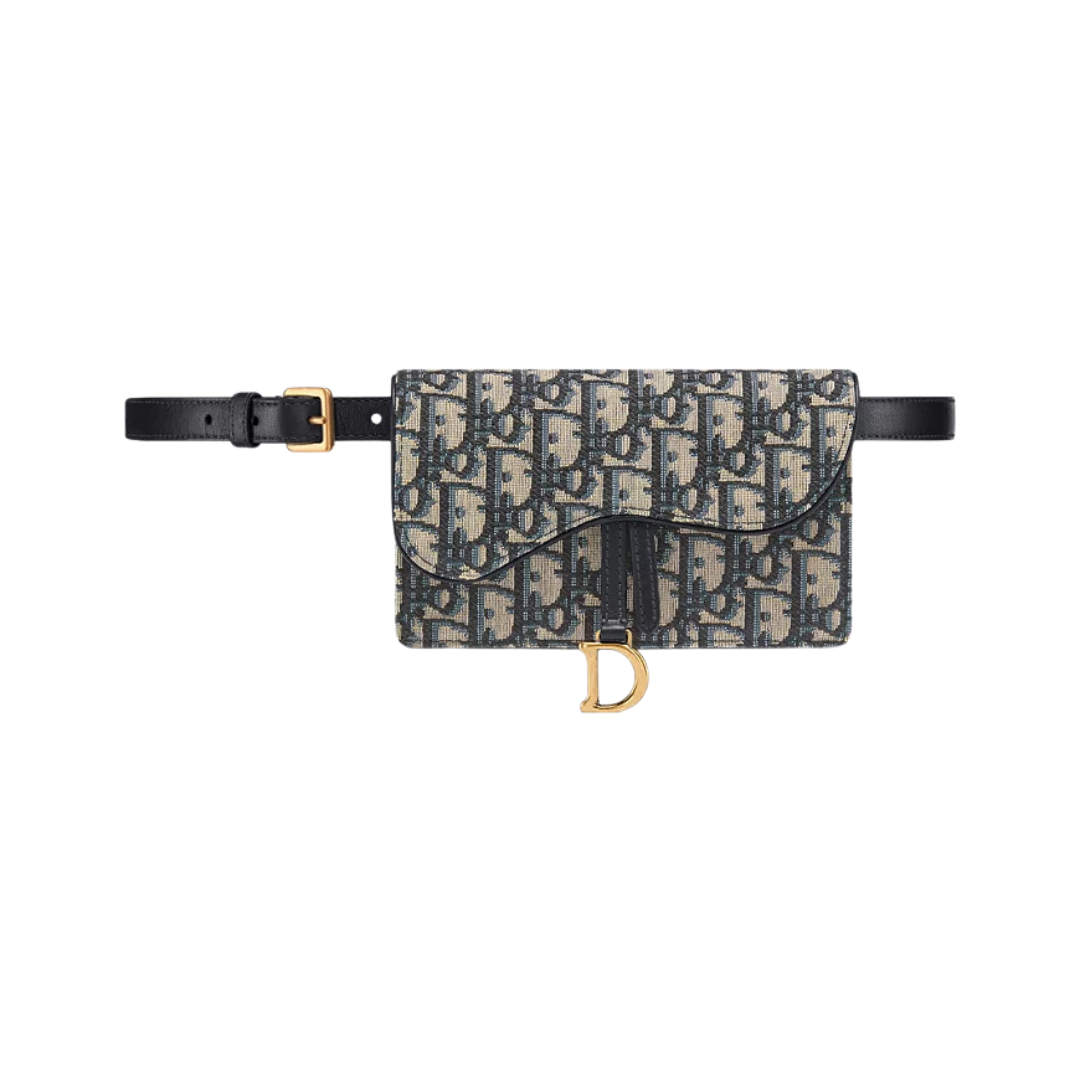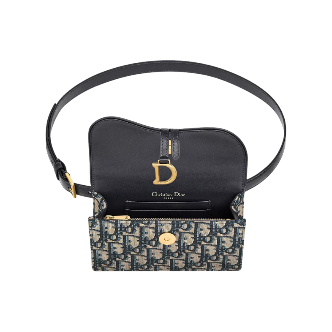 Pochette Dior Saddle con cinturino Jacquard Oblique blu 17 cm