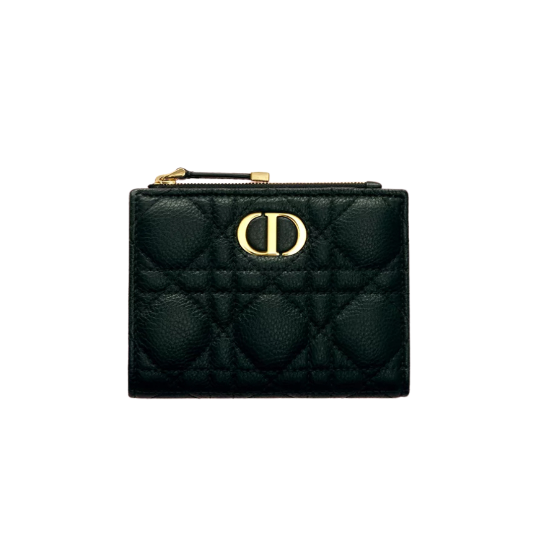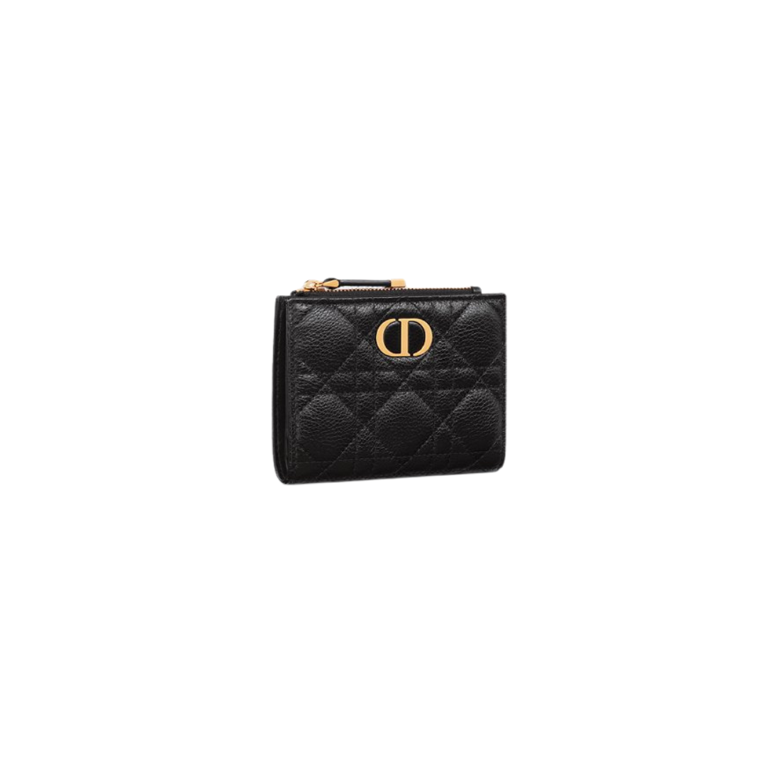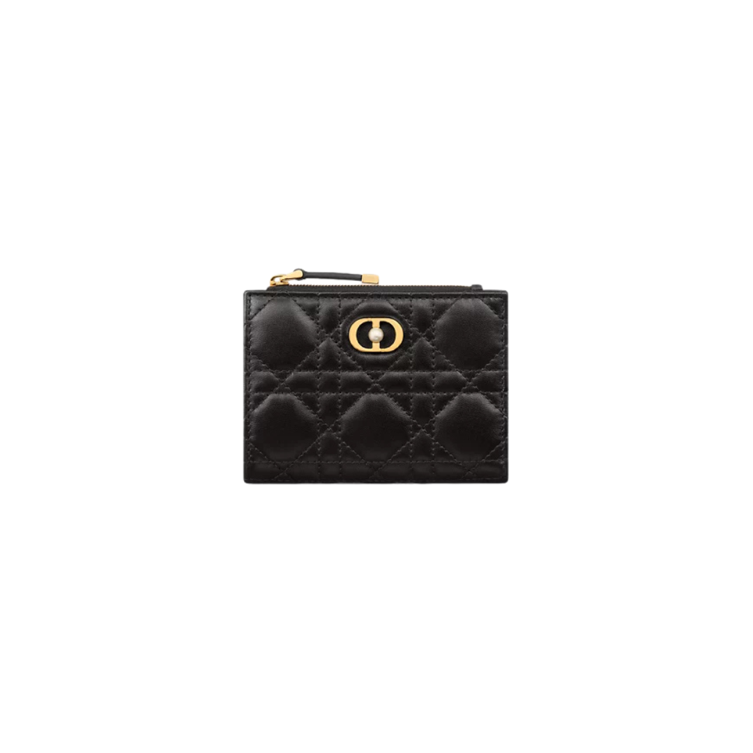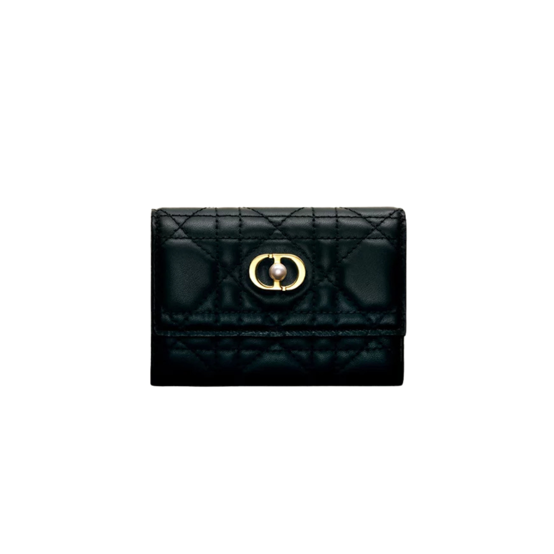 Portafoglio Dior in pelle di vitello nera con motivo Cannage