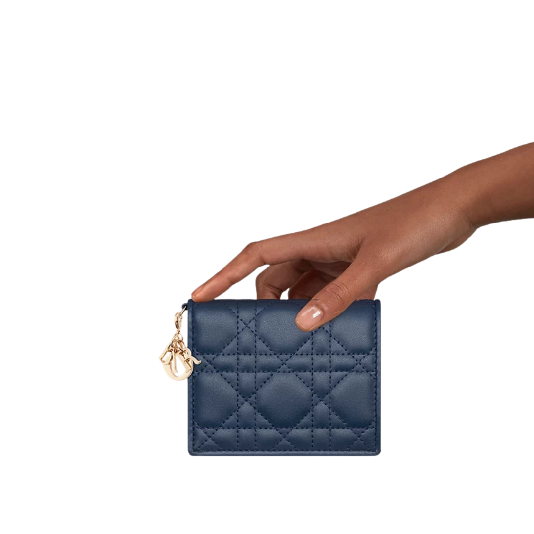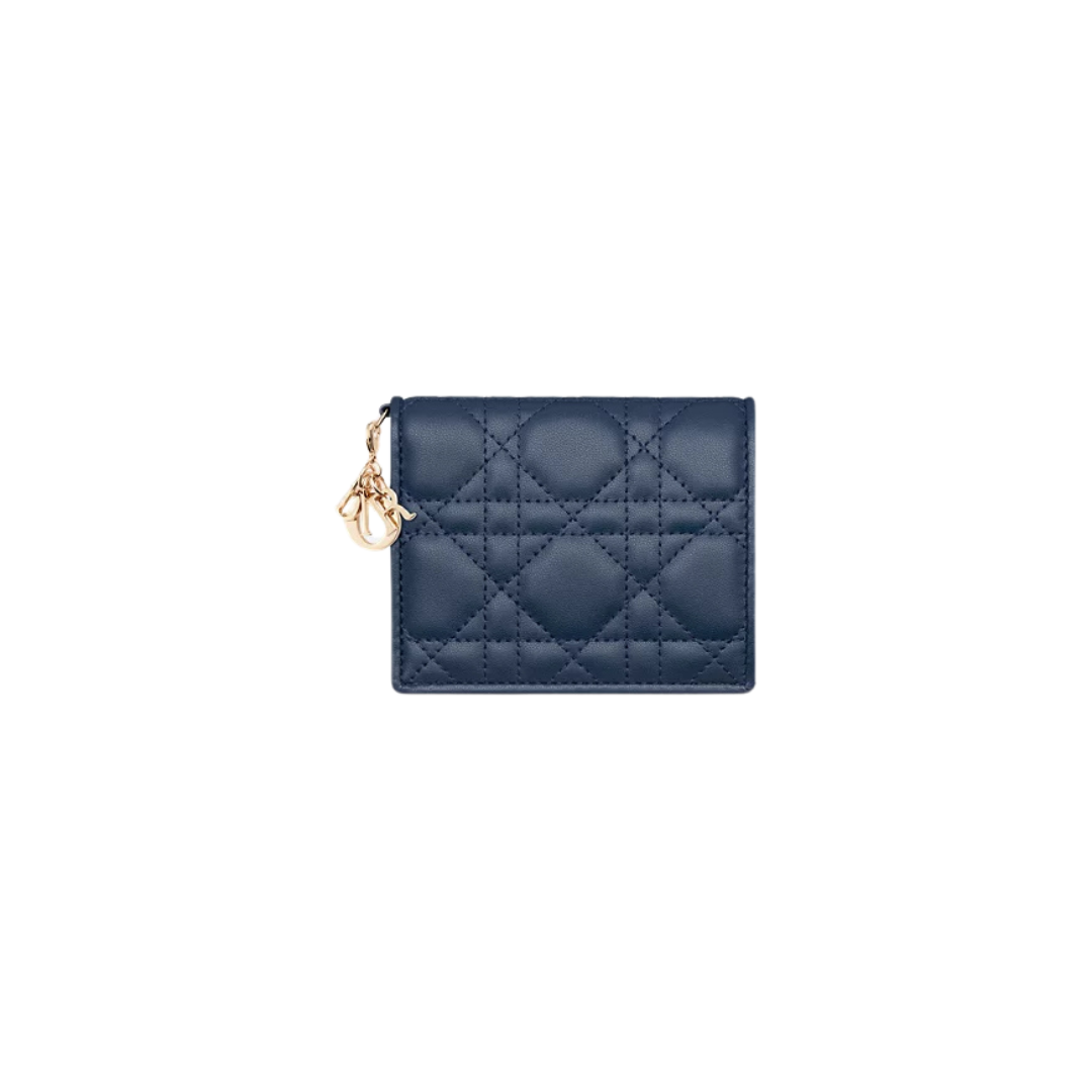 Portacarte Dior in agnello blu oceano motivo Cannage