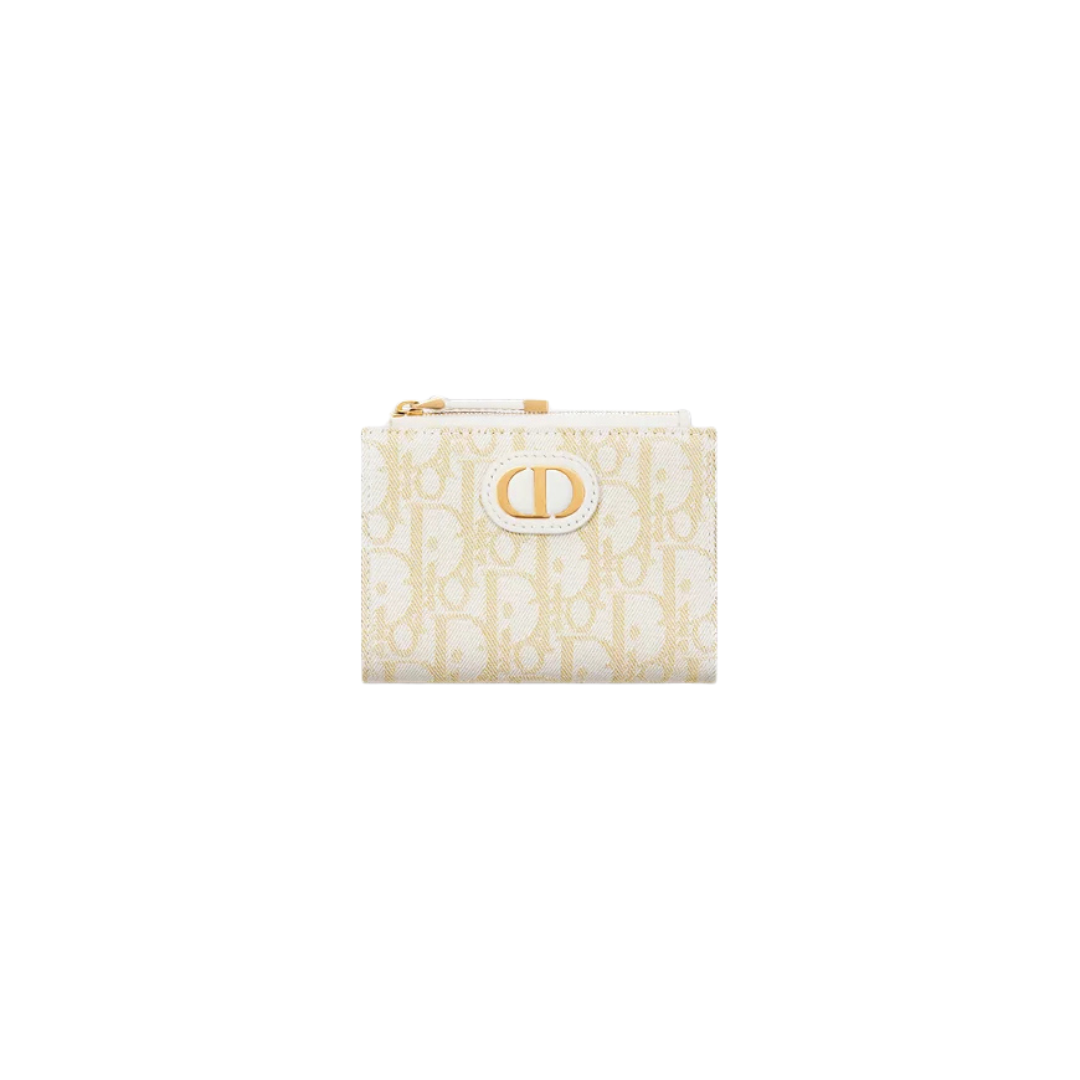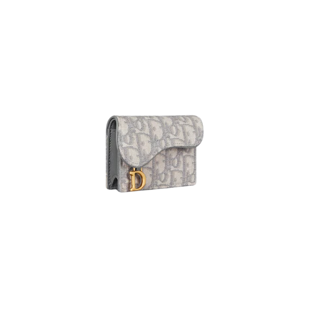 Portacarte Dior Saddle Jasmine in tessuto Oblique con scomparti plissettati