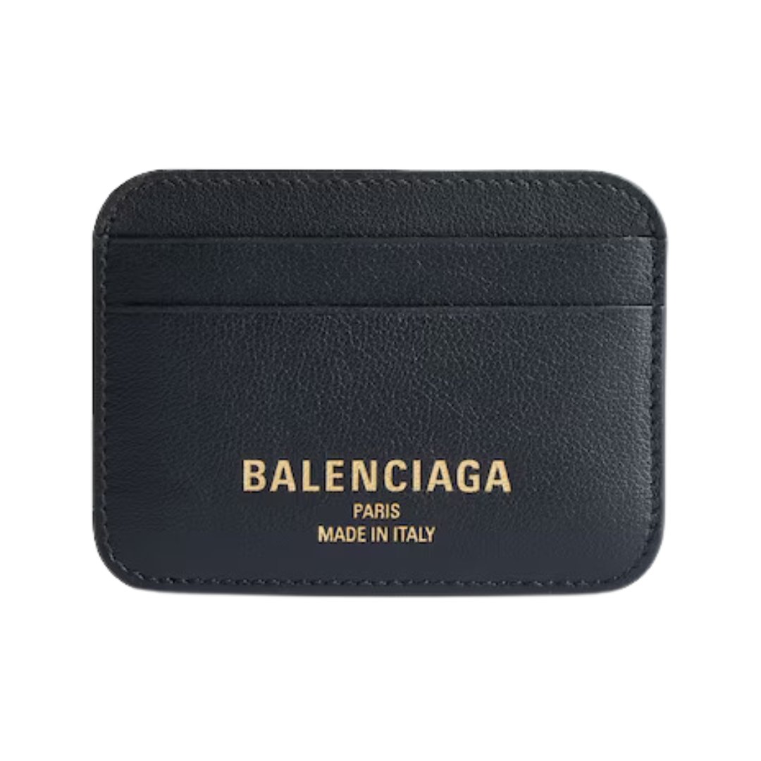 Portacarte compatto Balenciaga in pelle nera 10,5 cm