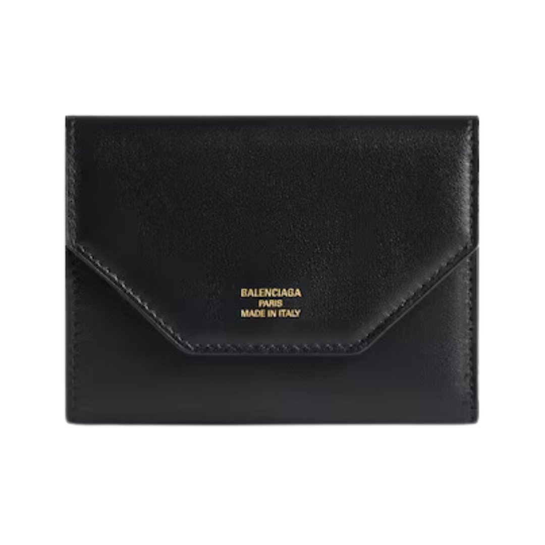 Mini portafoglio Balenciaga Envelope in pelle nera 10,5 cm