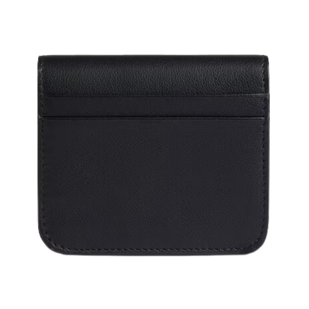 Dimensioni:● Larghezza: 10,5 cm● Altezza: 8,5 cm● Profondità: 2 cm Dettagli:● Materiale: Pelle di vitello● Colore: Nero● Chiusura: Patta con
