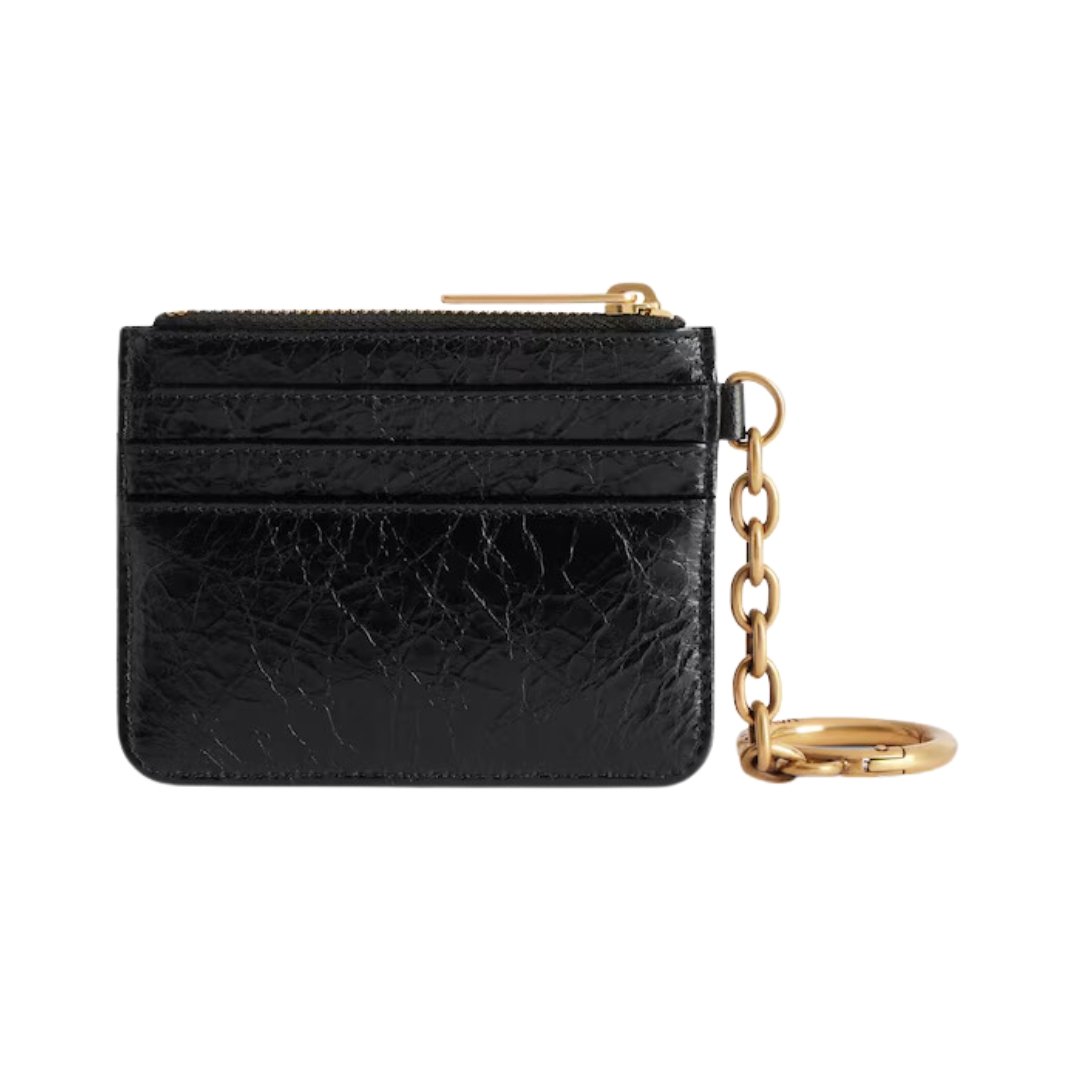 Dimensioni:● Larghezza: 10,5 cm● Altezza: 7,5 cm● Profondità: 1 cm Dettagli:● Materiale: Pelle di vitello liscia● Colore: Nero● Chiusura: Zip