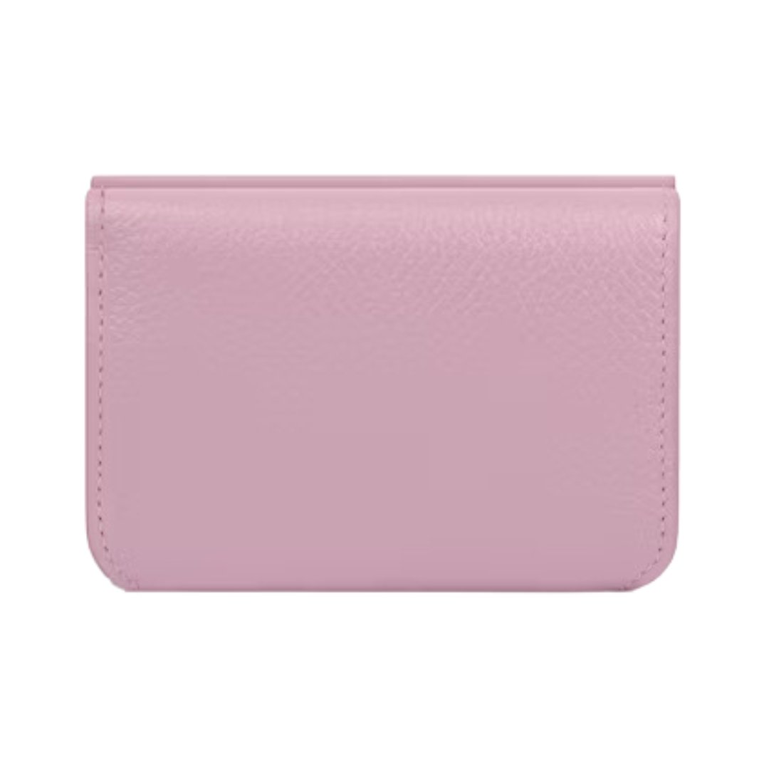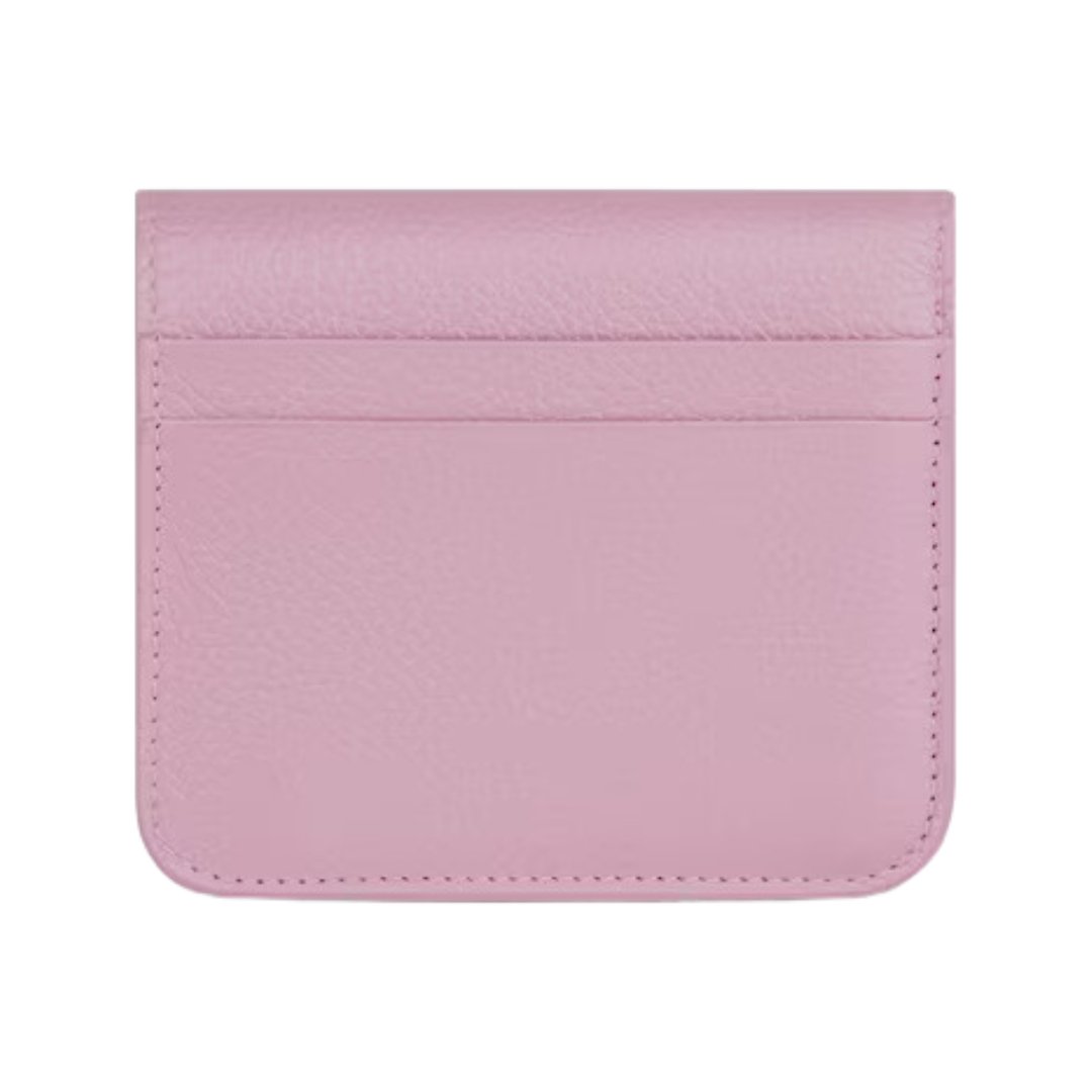 Dimensioni:● Larghezza: 9 cm● Altezza: 7 cm● Profondità: 2 cm Dettagli:● Materiale: Pelle di vitello liscia● Colore: Rosa● Chiusura: Bottone