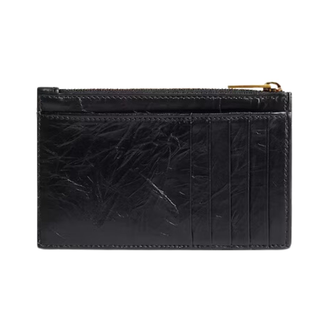 Dimensioni:● Larghezza: 13,5 cm● Altezza: 7 cm● Profondità: 1 cm Dettagli:● Materiale: Pelle di vitello liscia● Colore: Nero● Chiusura: Zip
