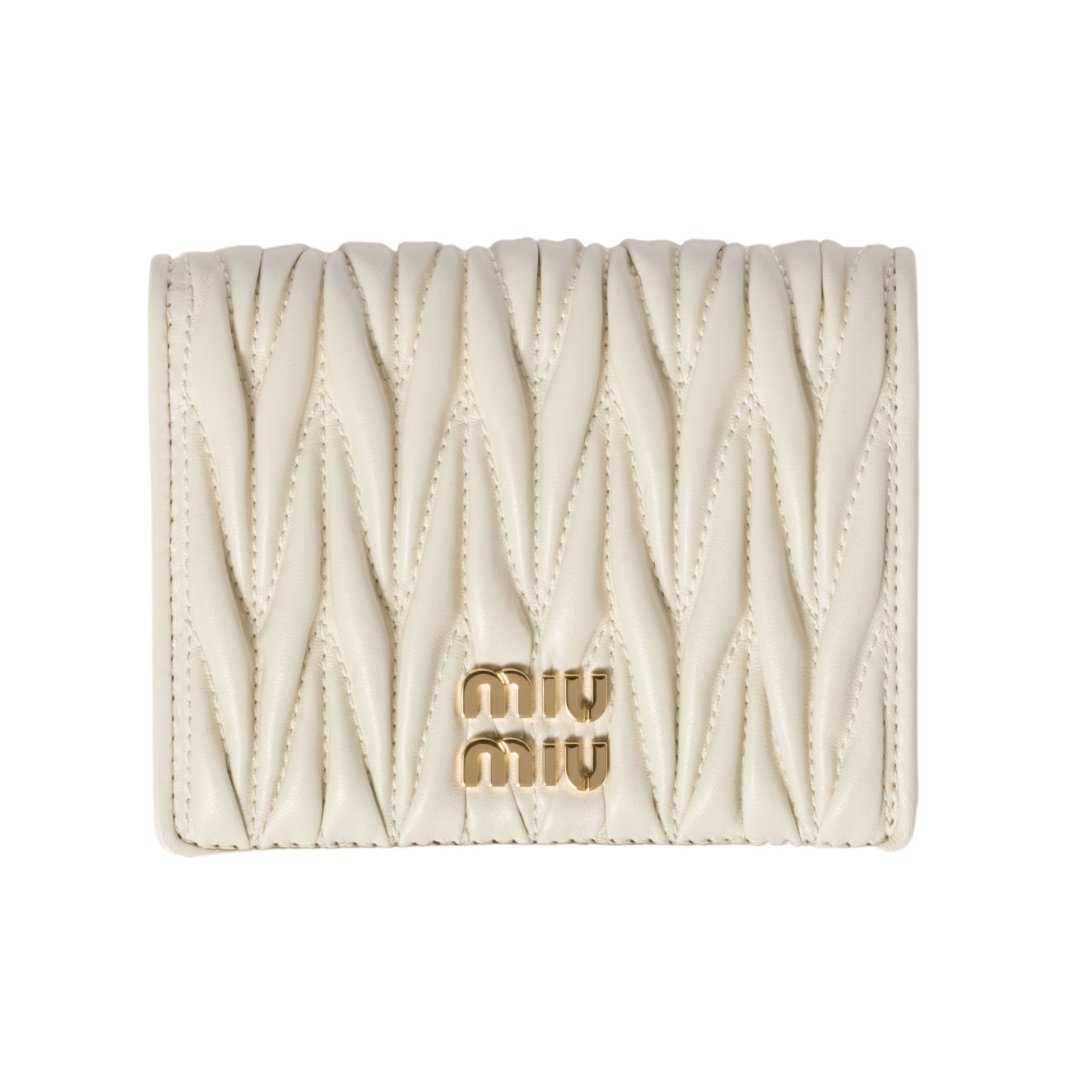 Portafoglio Miu Miu piccolo in pelle matelassé bianca 11,2 cm