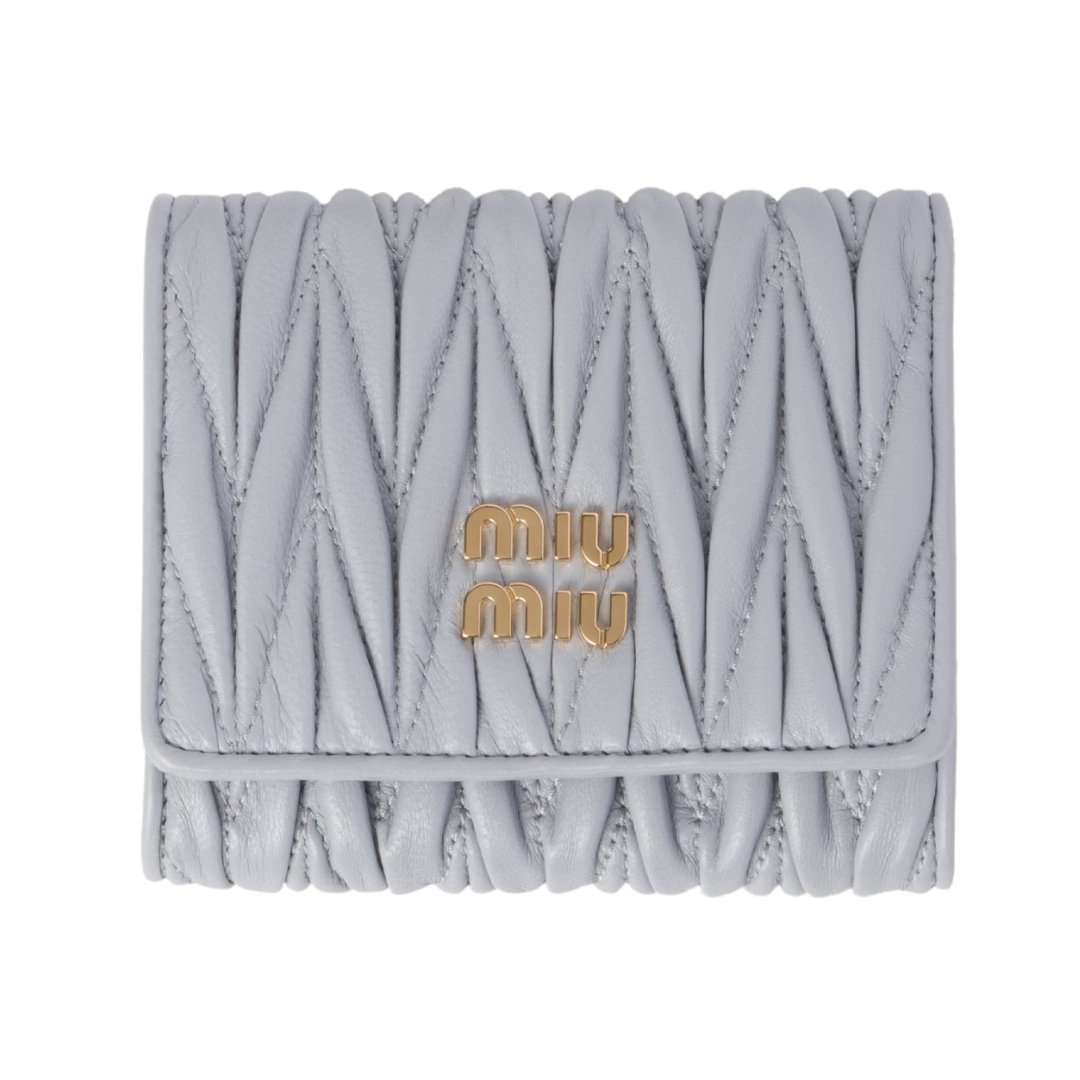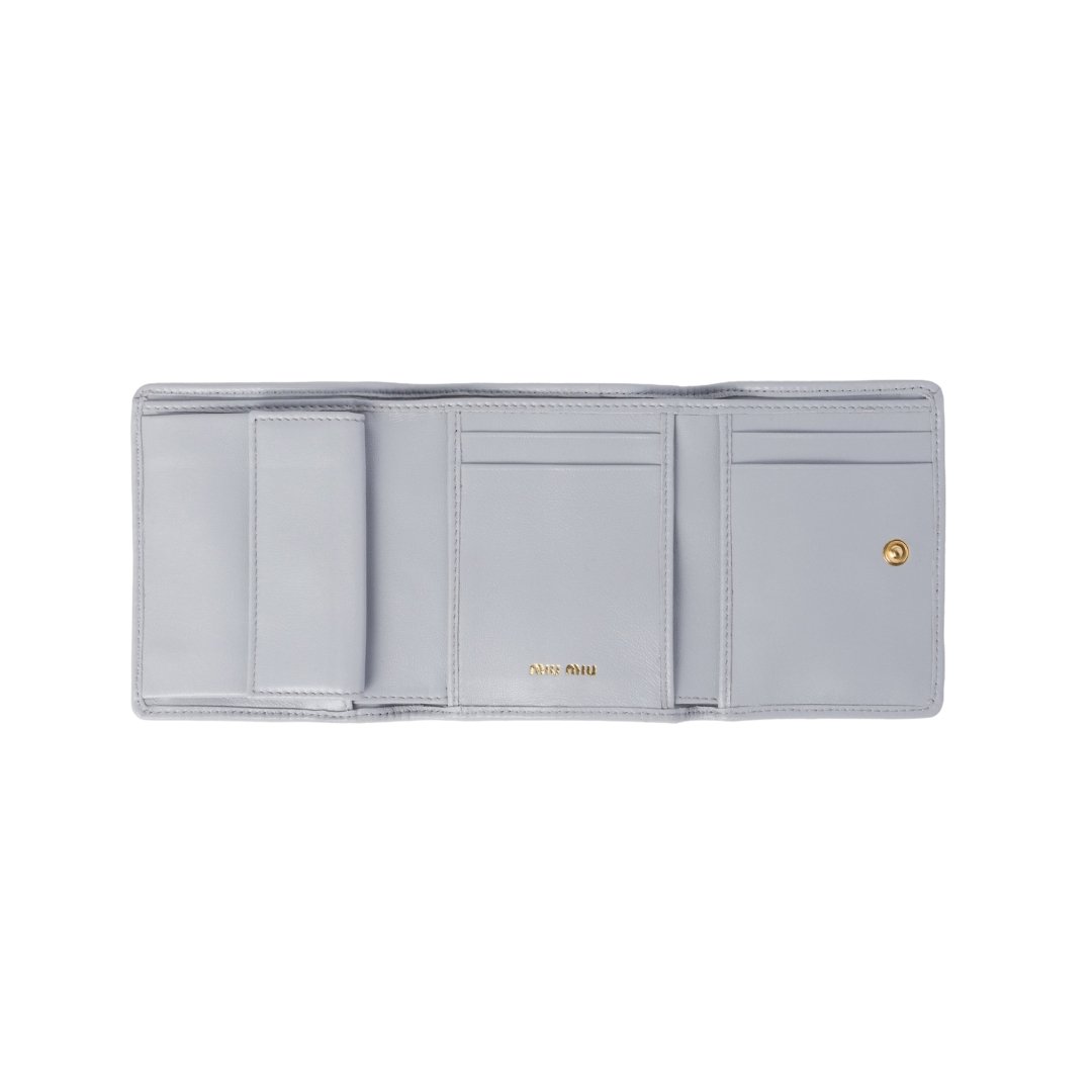 Portafoglio Miu Miu piccolo in pelle color fiordaliso 9 cm