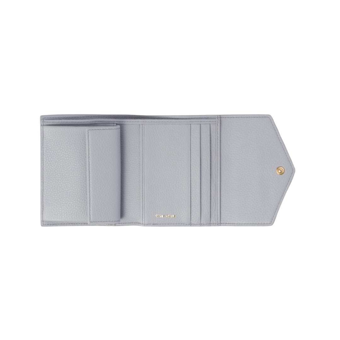 Dimensioni:● Larghezza: 9 cm● Altezza: 7 cm● Profondità: 2 cm Dettagli:● Materiale: pelle martellata● Colore: fiordaliso● Chiusura: bottone● Logo: piccolo