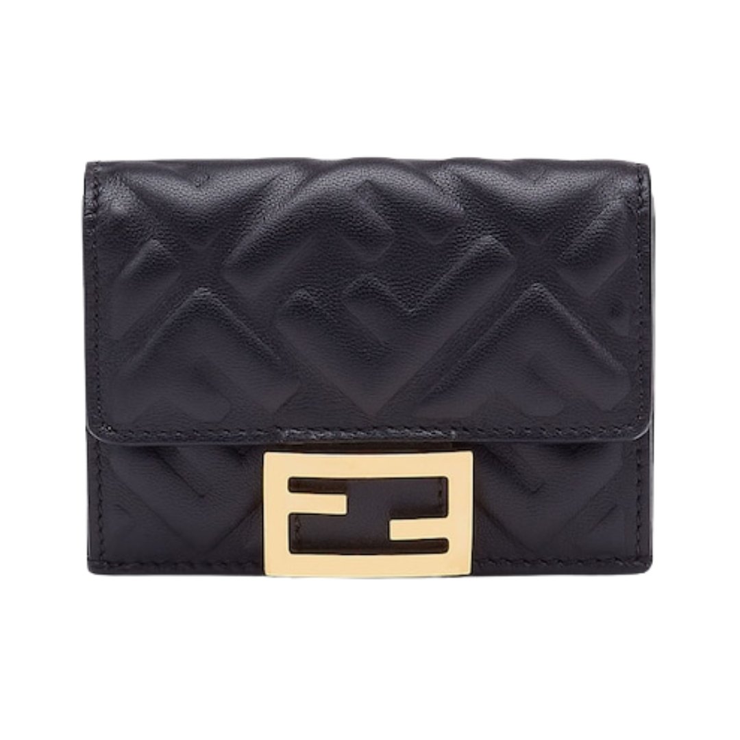Portafoglio bi-fold Fendi compatto in pelle nera 9.5 cm