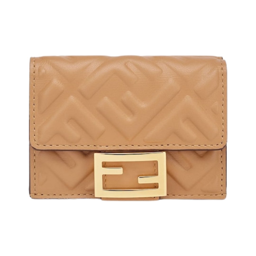 Portafoglio Fendi in pelle nappata grigio tortora 7,5 cm