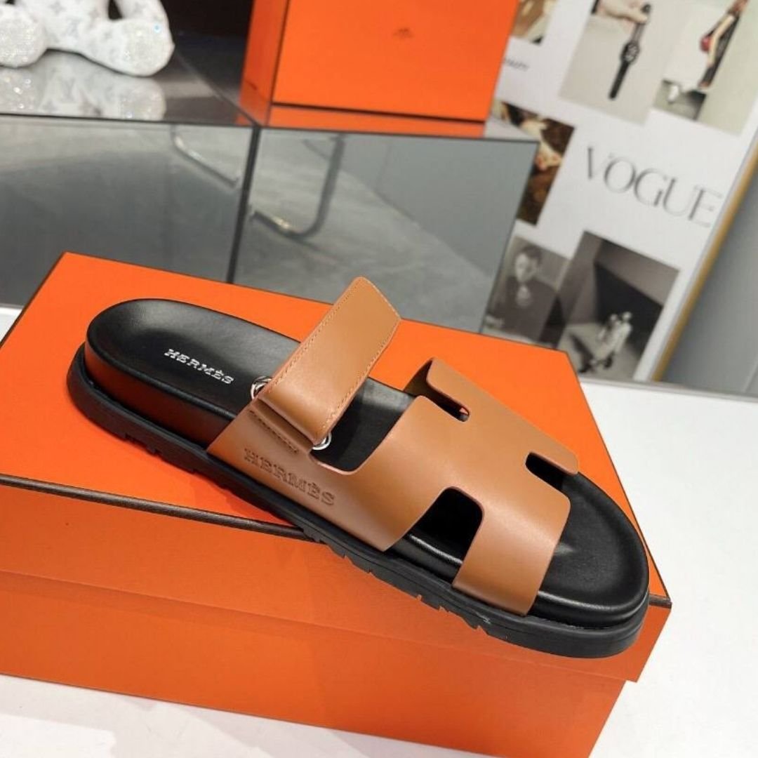 Sandali Hermès Oran in pelle marrone con H traforata