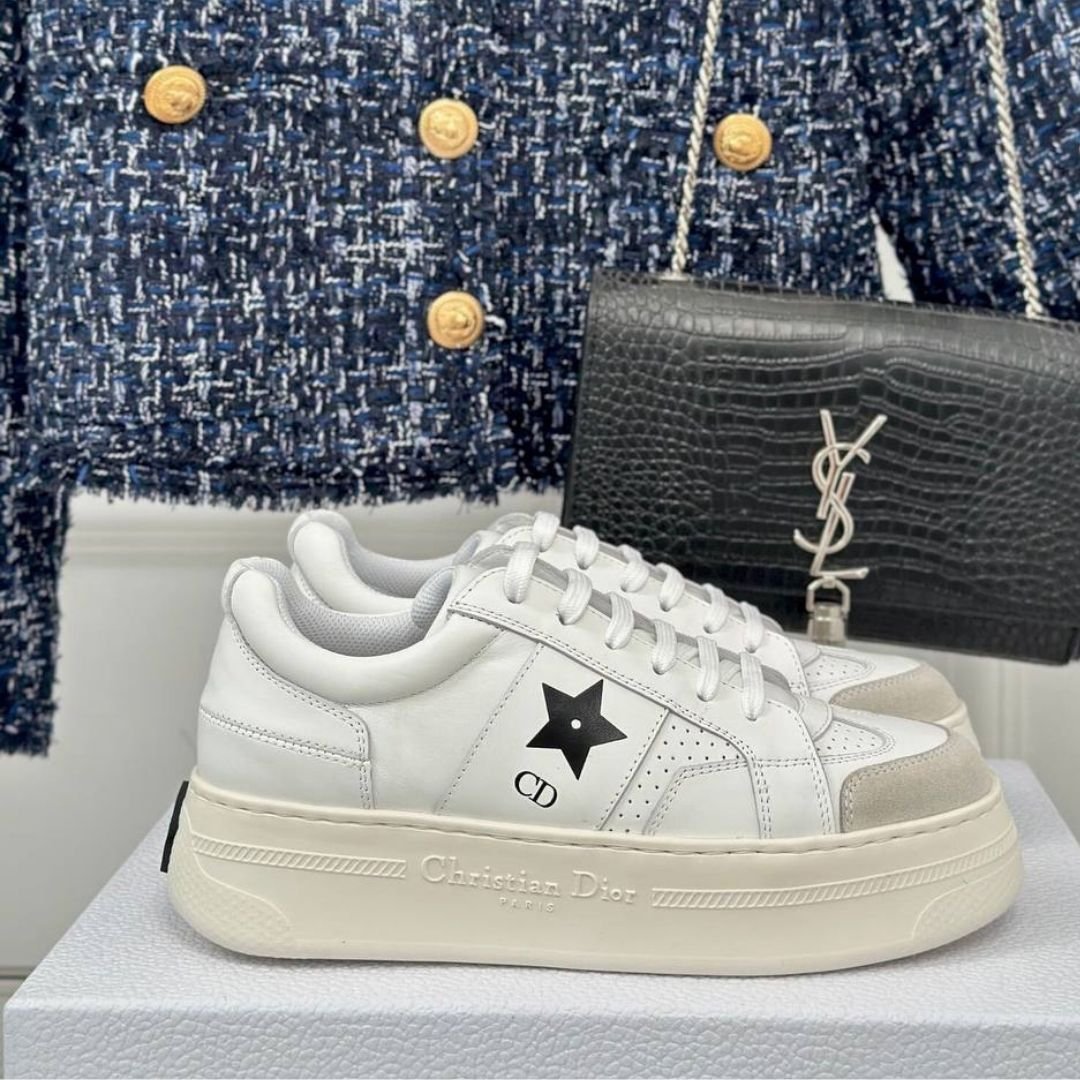 Dettagli:● Materiale: Pelle di vitello● Colore: Bianco● Chiusura: Lacci● Logo: CD Star● Suola: Gomma spessa● Interno: Fodera in pelle● Parti