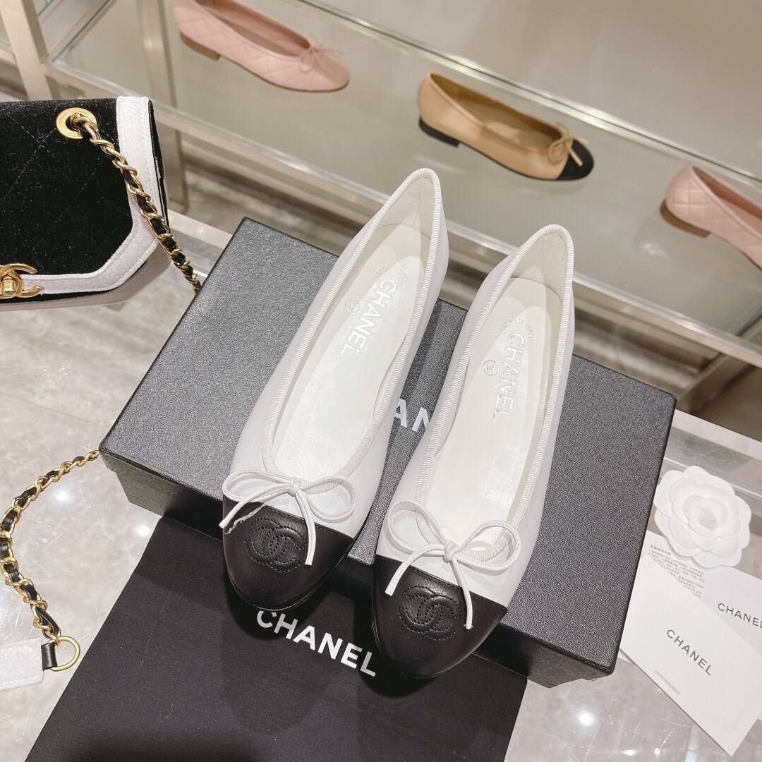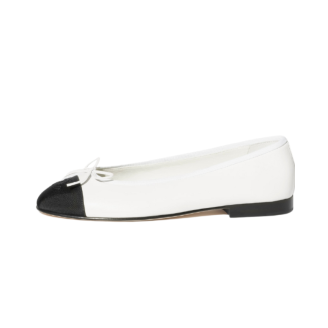 Ballerine Chanel in shearling bianco e gros grain nero