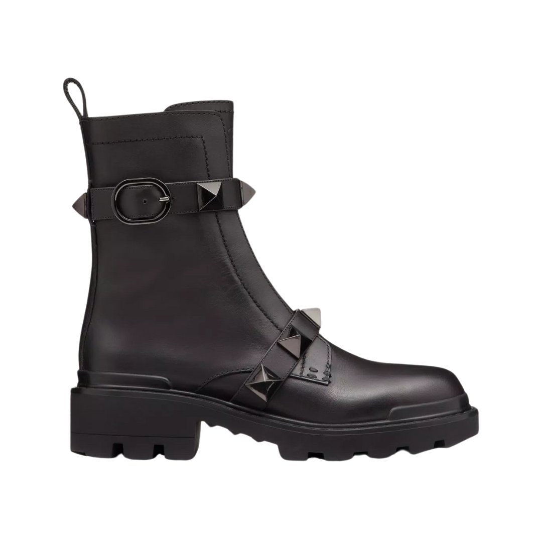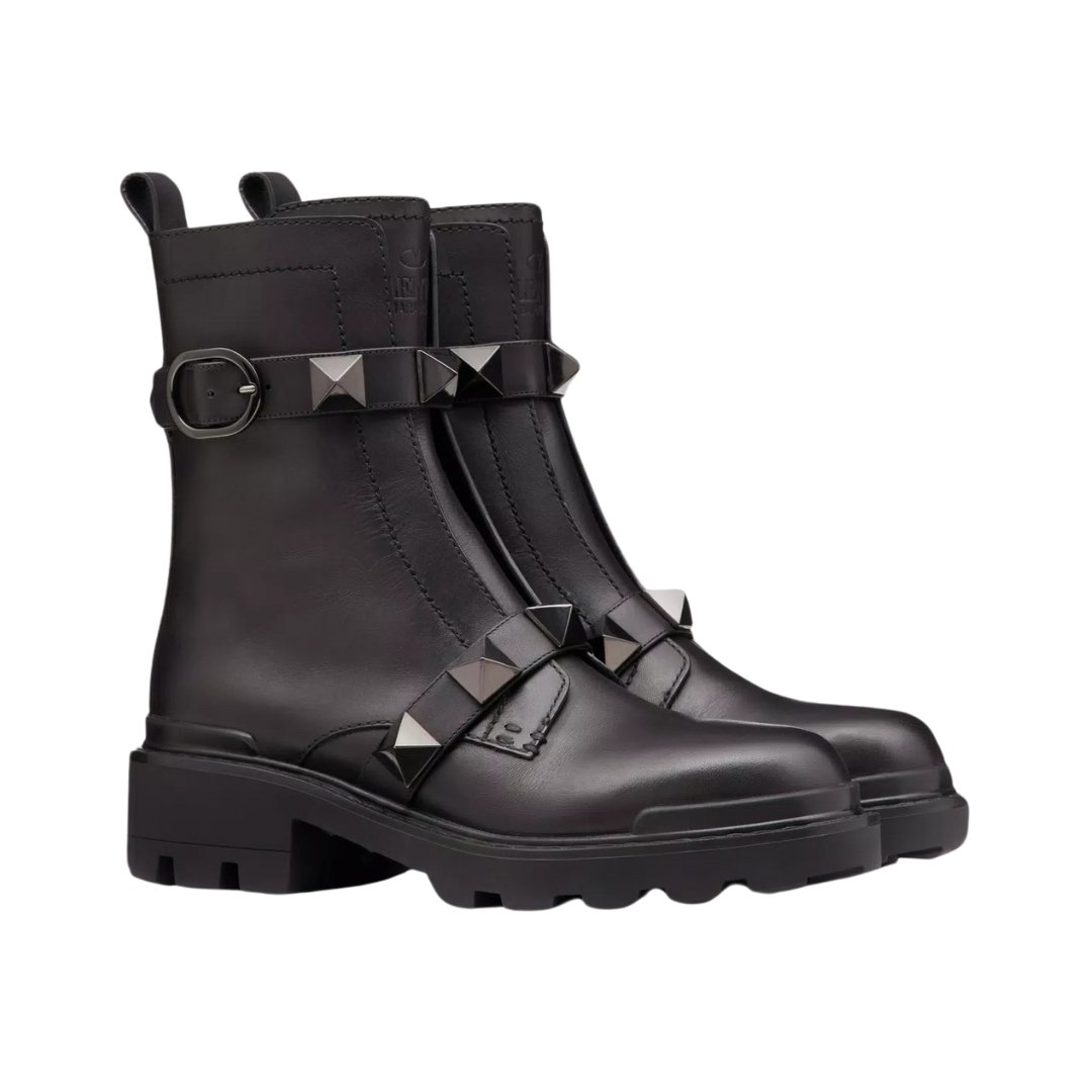Stivaletti combat Valentino Roman Stud in pelle di vitello nera 4 cm