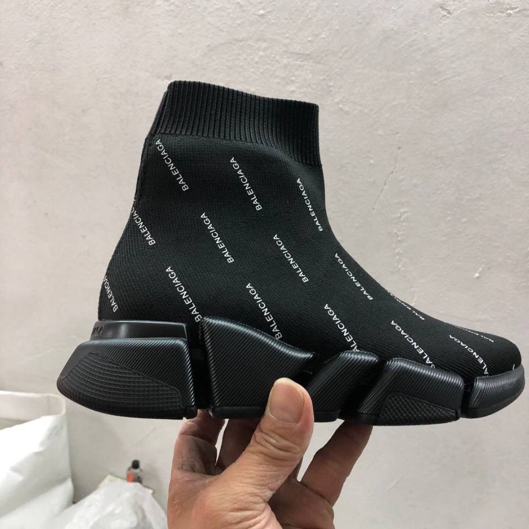Sneakers Balenciaga Speed 2.0 in maglia nera con logo bianco