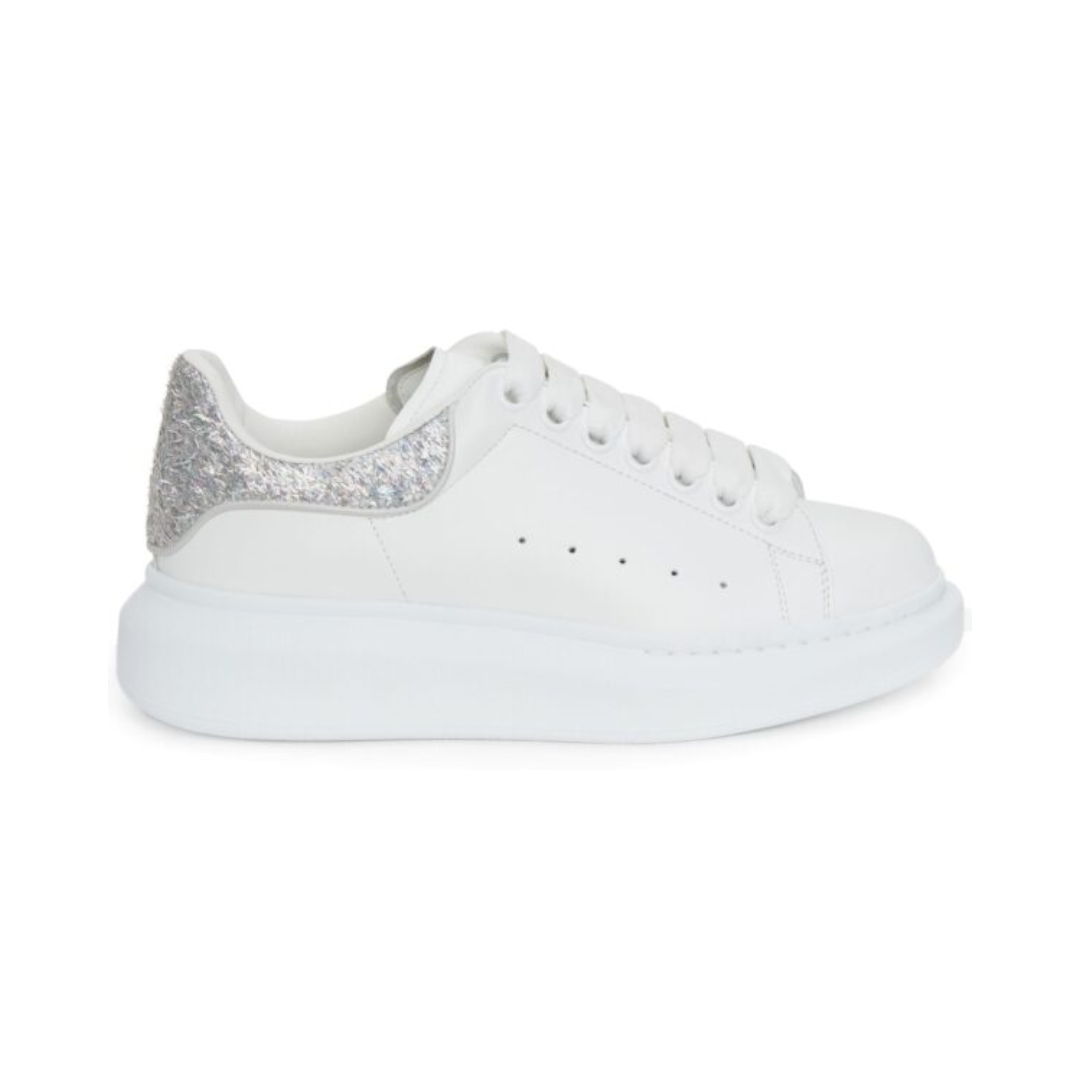 Dettagli:● Materiale: Pelle liscia con dettaglio glitterato● Colore: Bianco con tallone madreperlato multicolore● Chiusura: Lacci bianchi● Logo: Logo Alexander McQueen