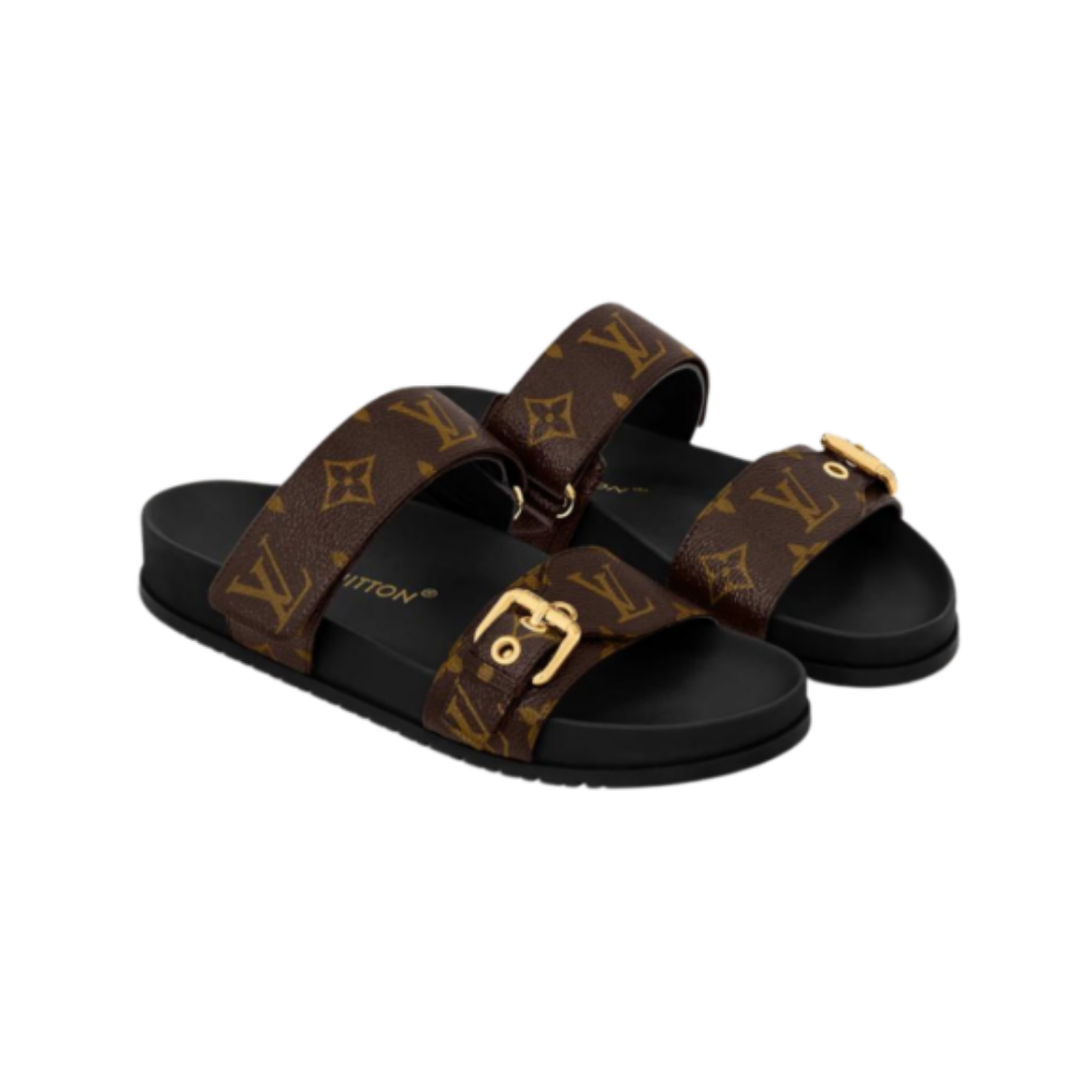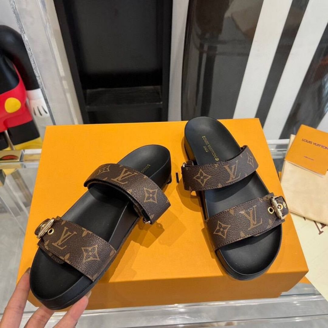 Dettagli:● Materiale: Pelle● Colore: Marrone e nero● Chiusura: Doppio cinturino con fibbie● Logo: Louis Vuitton impresso● Suola: Gomma antiscivolo● Interno: