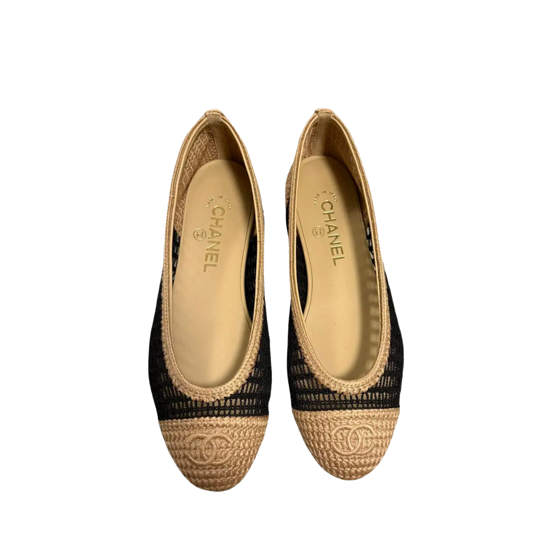 Dettagli:● Materiale: Rafia e pelle● Colore: Beige e nero● Chiusura: Slip-on● Logo: CC frontale● Suola: Pelle● Interno: Foderato● Parti metalliche: