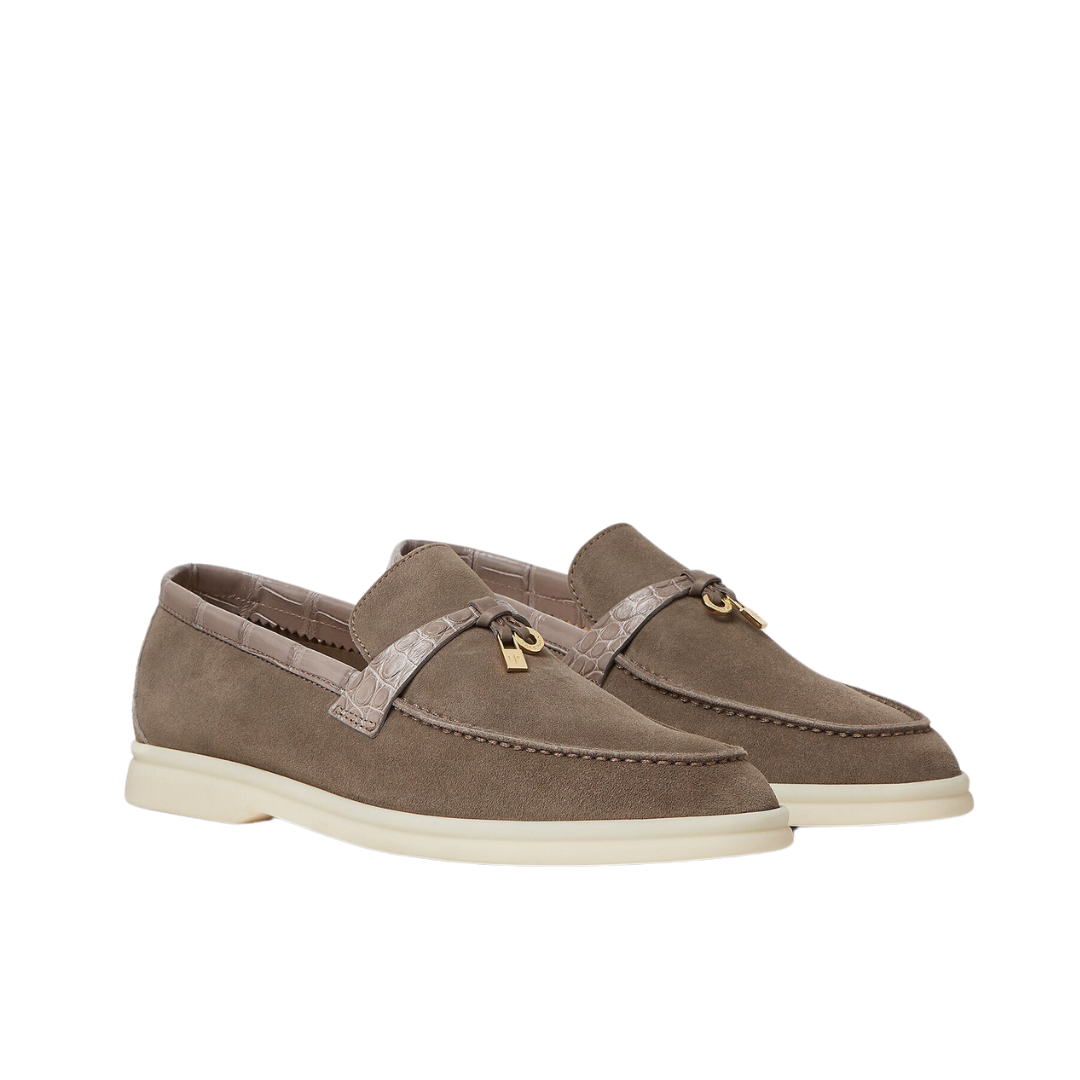 Mocassini Loro Piana Summer Charms Walk in camoscio color miele