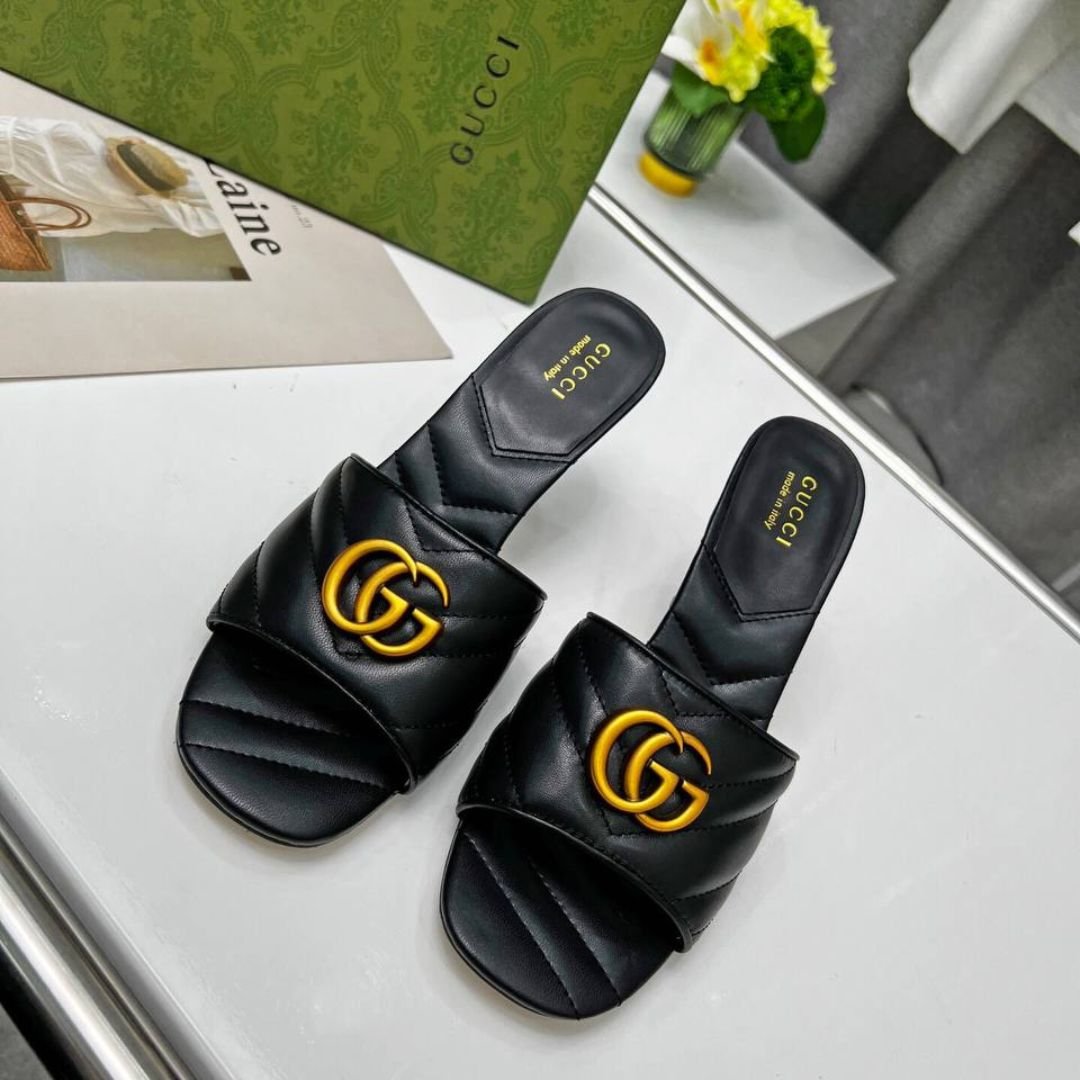Dettagli:● Materiale: Pelle liscia● Colore: Nero● Chiusura: Slip-on● Logo: Doppia G dorata sulla fascia frontale● Suola: In cuoio● Interno: Fodera