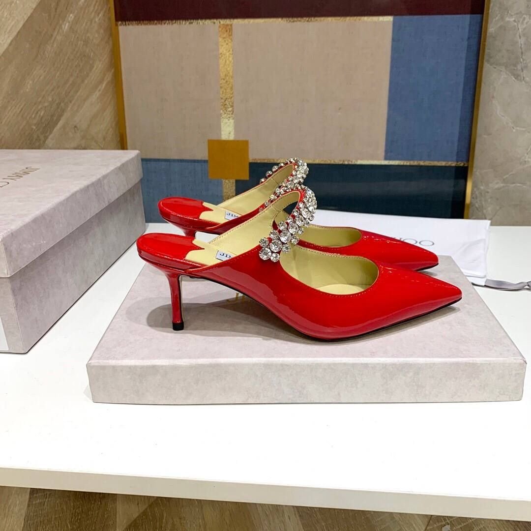 Mules Jimmy Choo Bing in vernice rossa con cinturino gioiello 10 cm